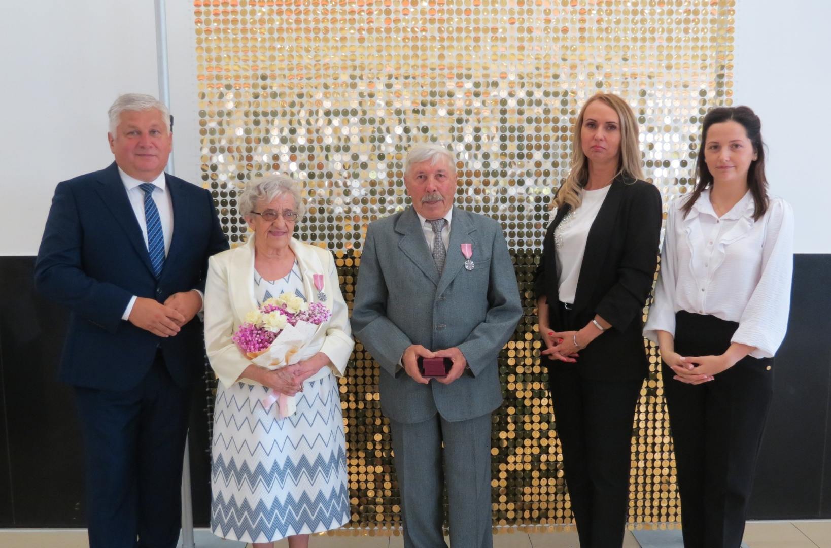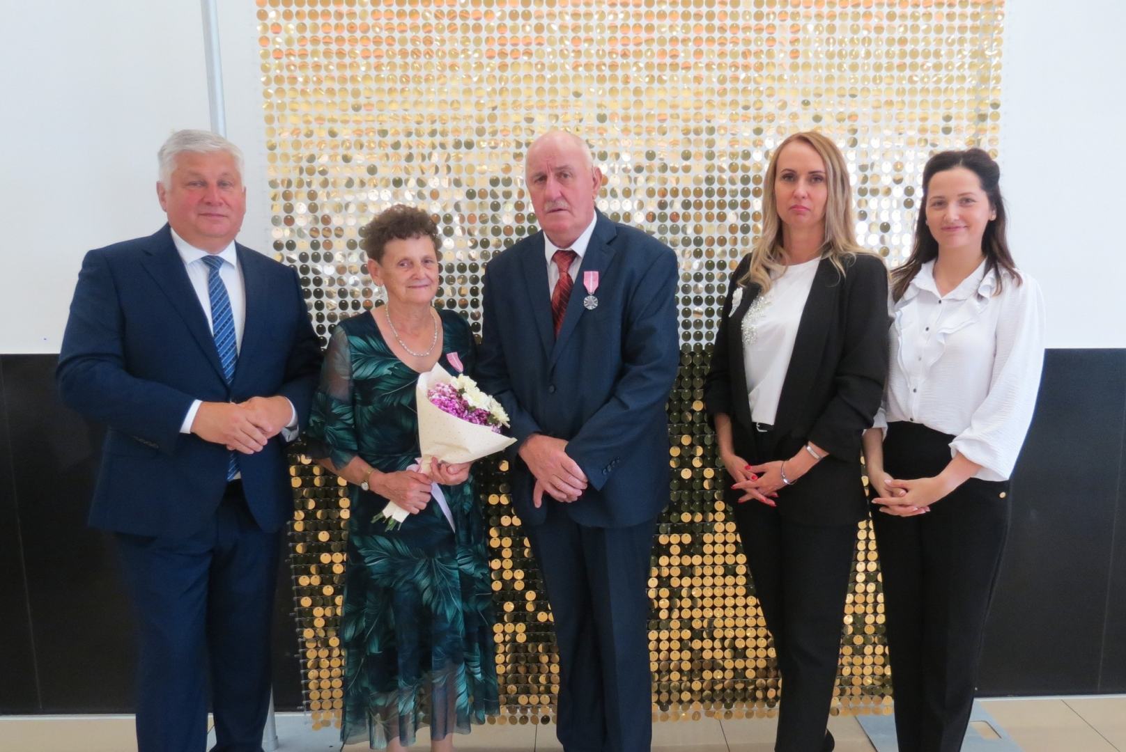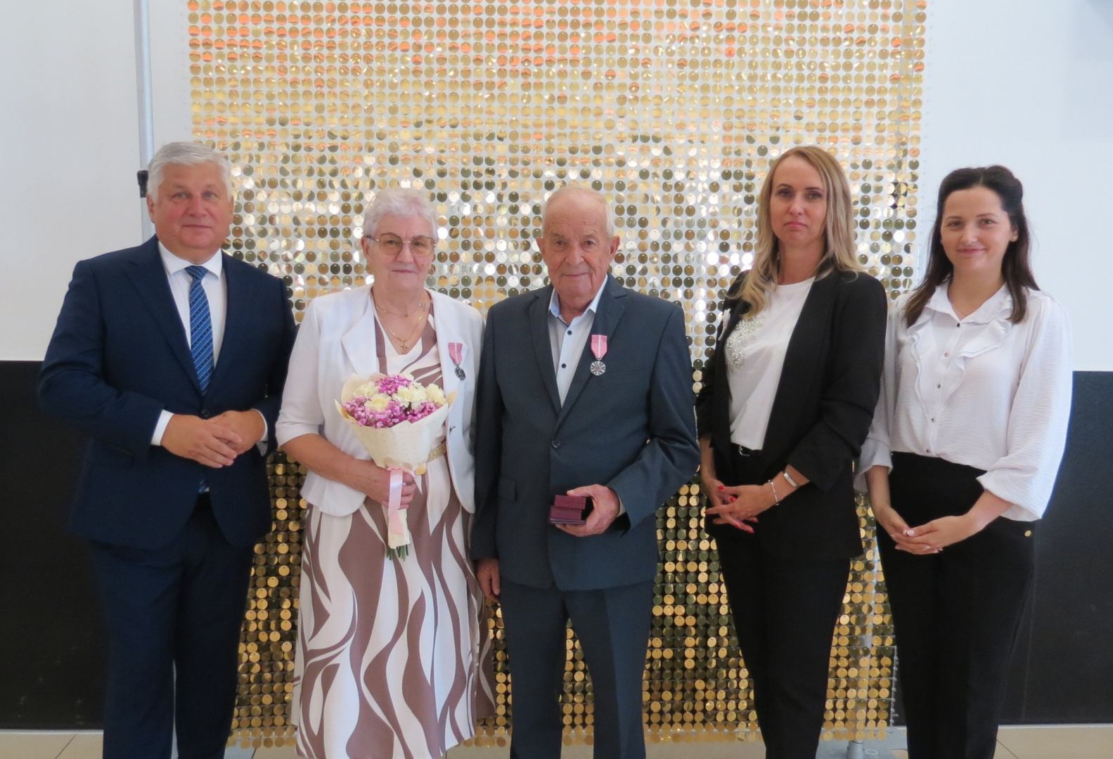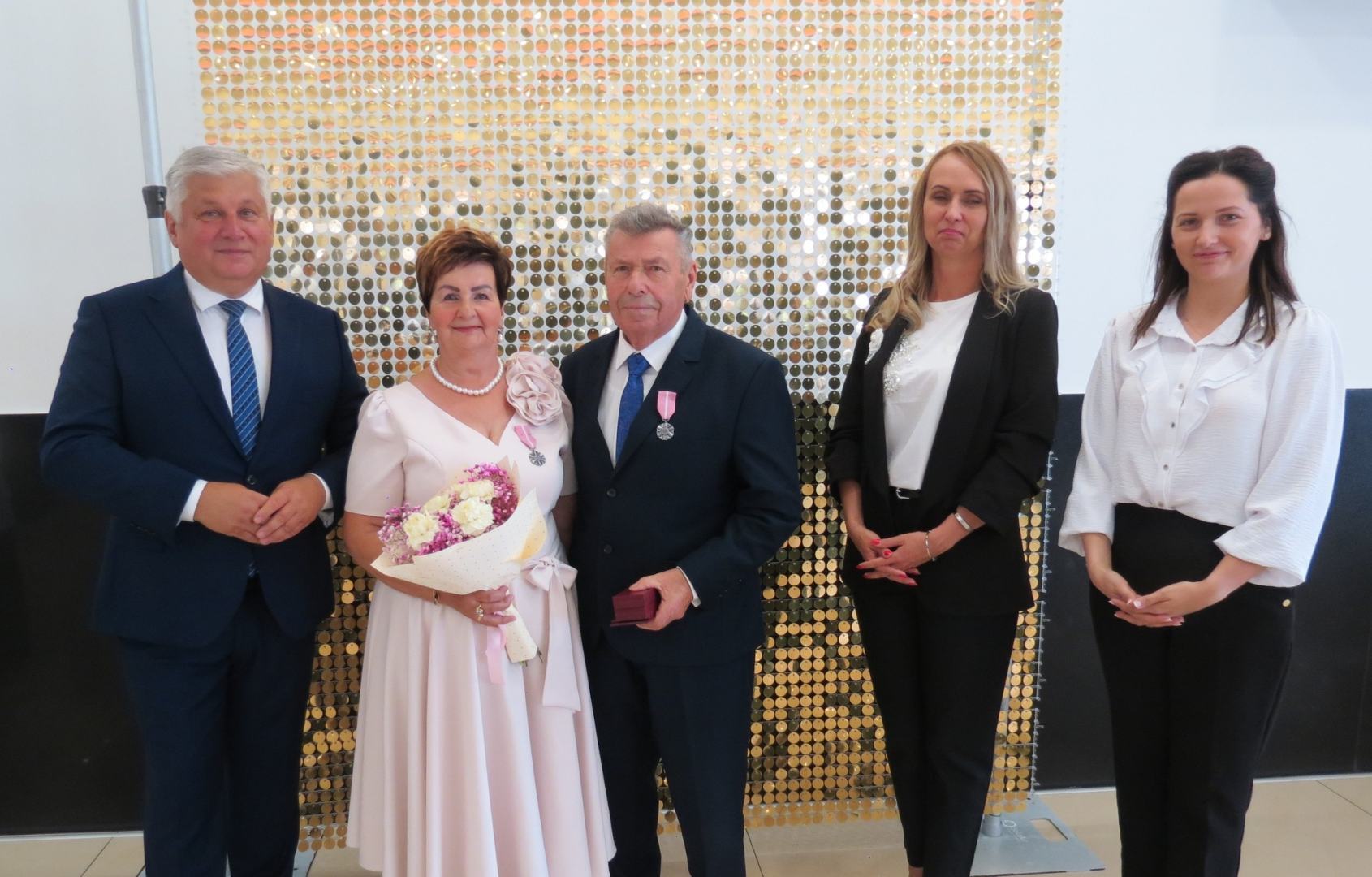 Burmistrz Karol Skrzypczak wraz z kierownik Urzędu Stanu Cywilnego Natalią Wawrzyniak oraz jej zastępcą Katarzyną Rajewską wręczyli jubilatom, w imieniu Prezydenta Rzeczypospolitej Polskiej, Medale za Długoletnie Pożycie Małżeńskie.