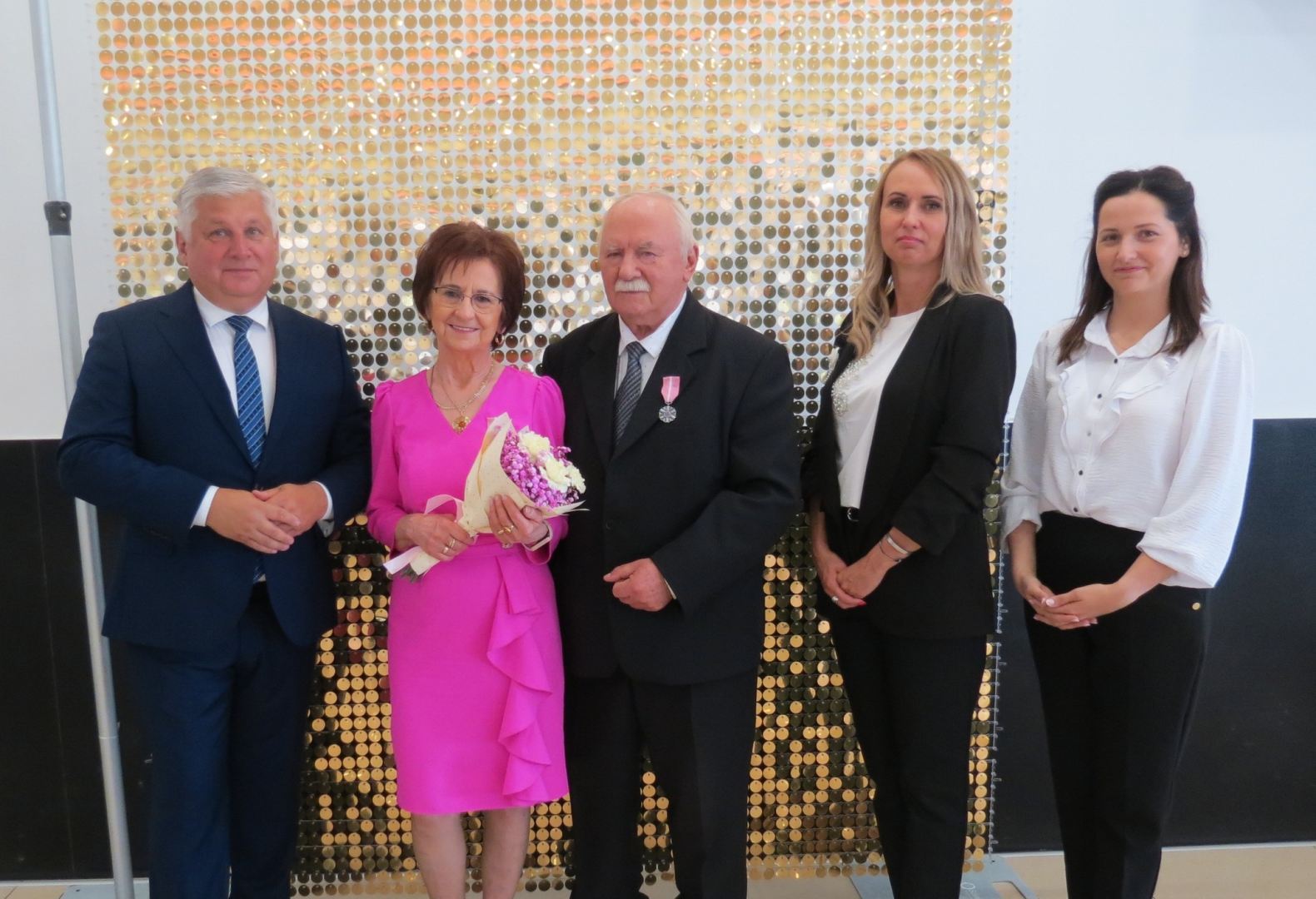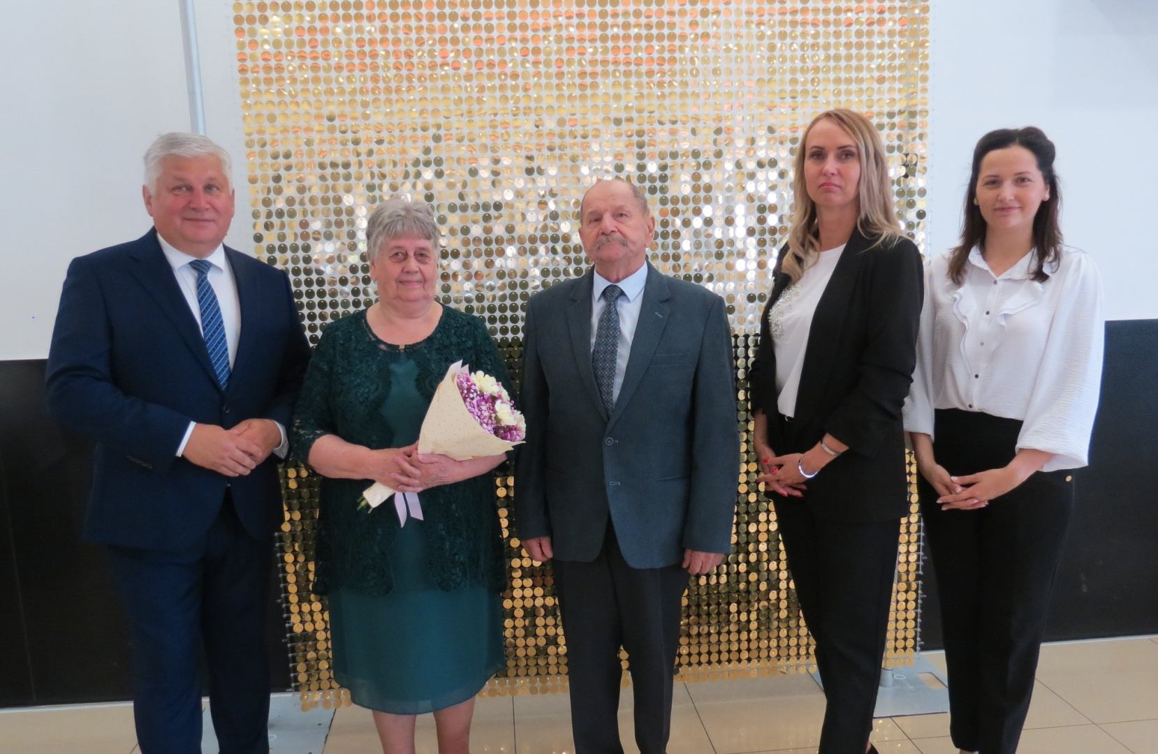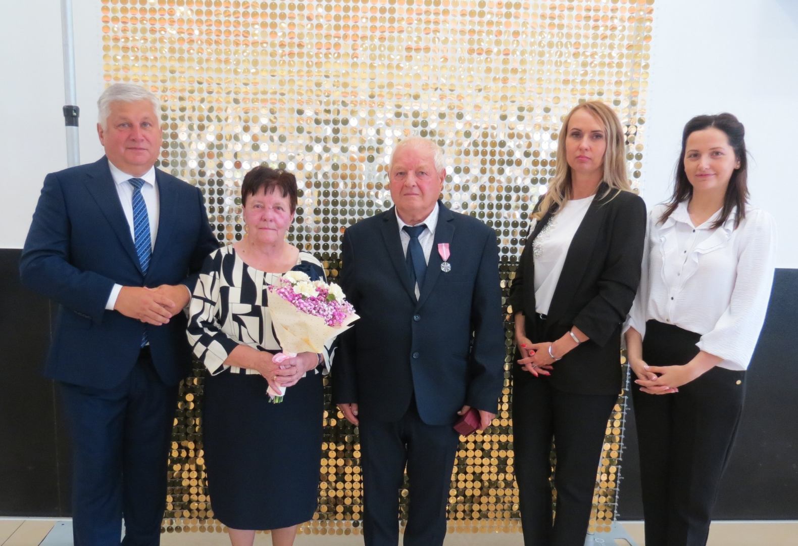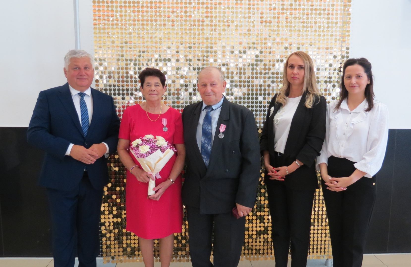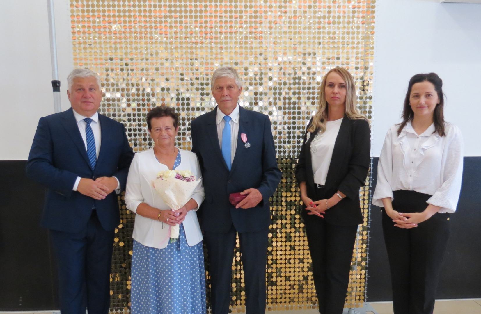 Burmistrz Karol Skrzypczak wraz z kierownik Urzędu Stanu Cywilnego Natalią Wawrzyniak oraz jej zastępcą Katarzyną Rajewską wręczyli jubilatom, w imieniu Prezydenta Rzeczypospolitej Polskiej, Medale za Długoletnie Pożycie Małżeńskie.