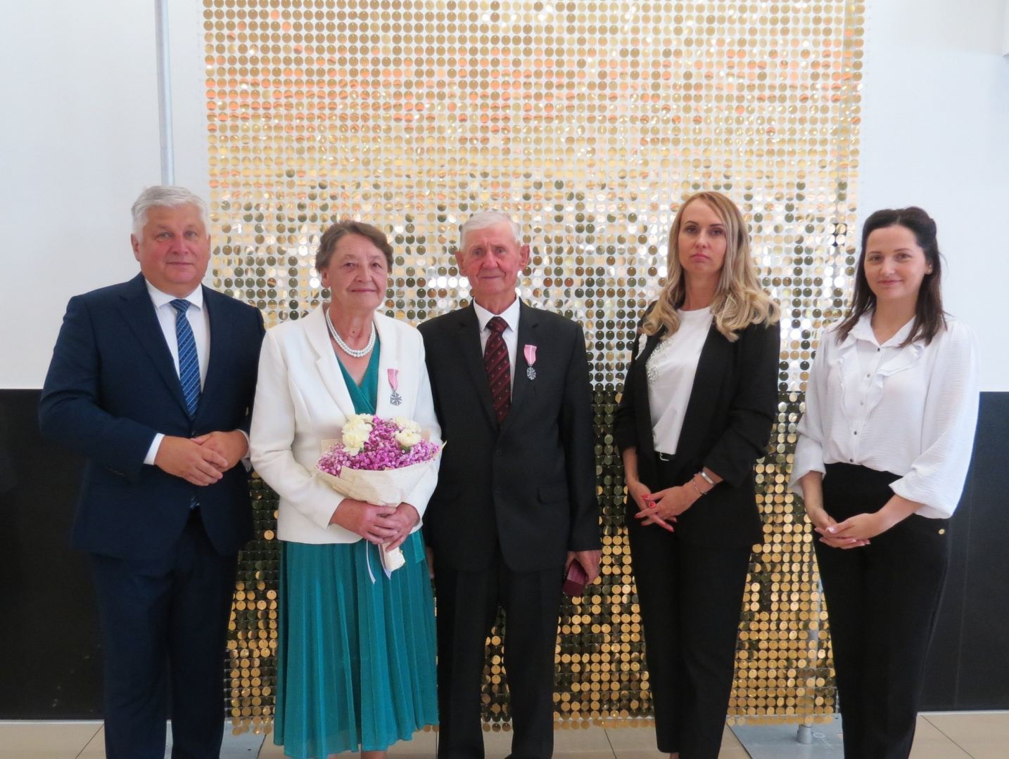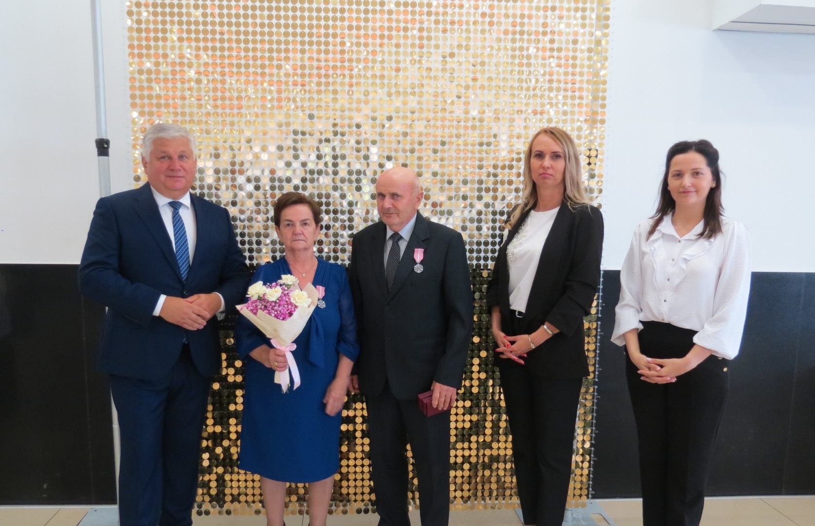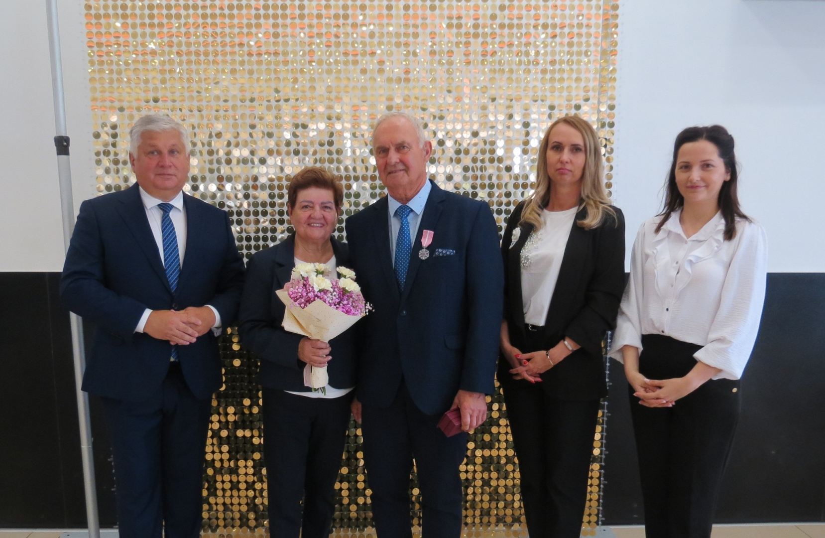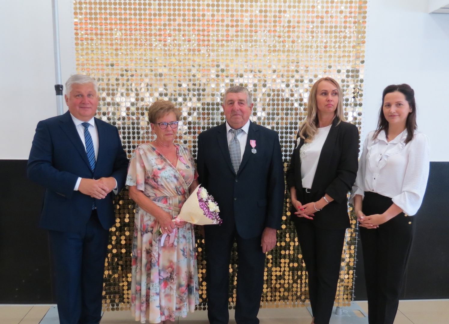 Burmistrz Karol Skrzypczak wraz z kierownik Urzędu Stanu Cywilnego Natalią Wawrzyniak oraz jej zastępcą Katarzyną Rajewską wręczyli jubilatom, w imieniu Prezydenta Rzeczypospolitej Polskiej, Medale za Długoletnie Pożycie Małżeńskie.