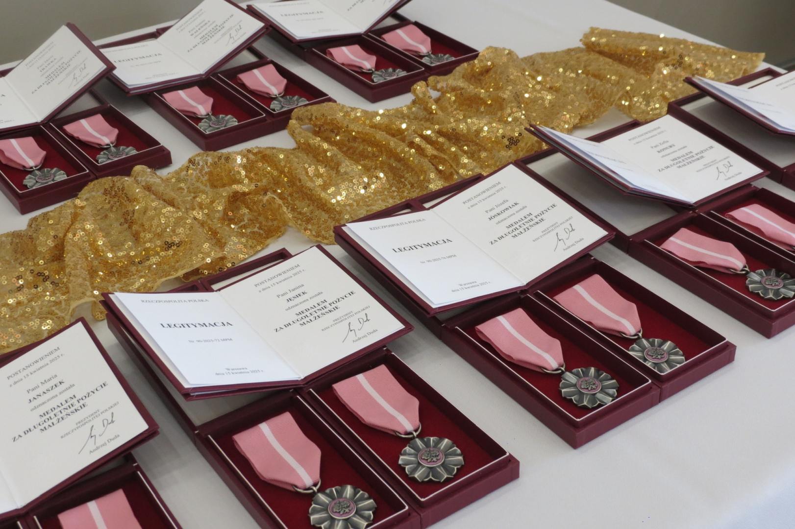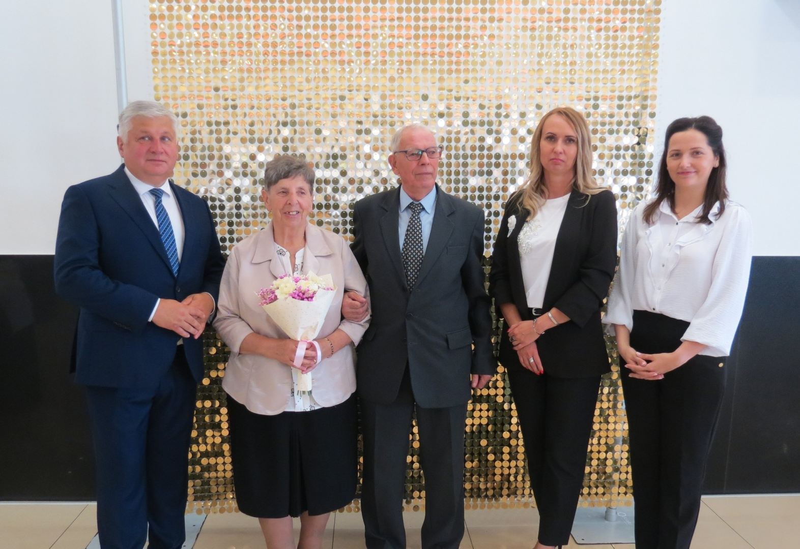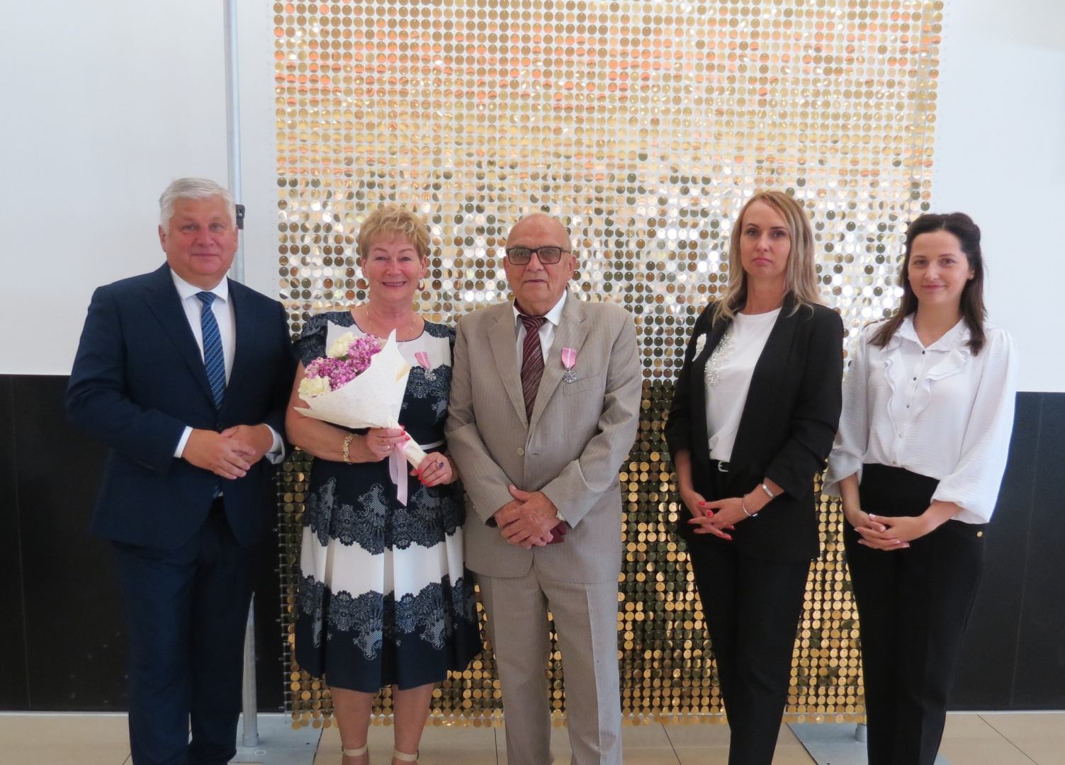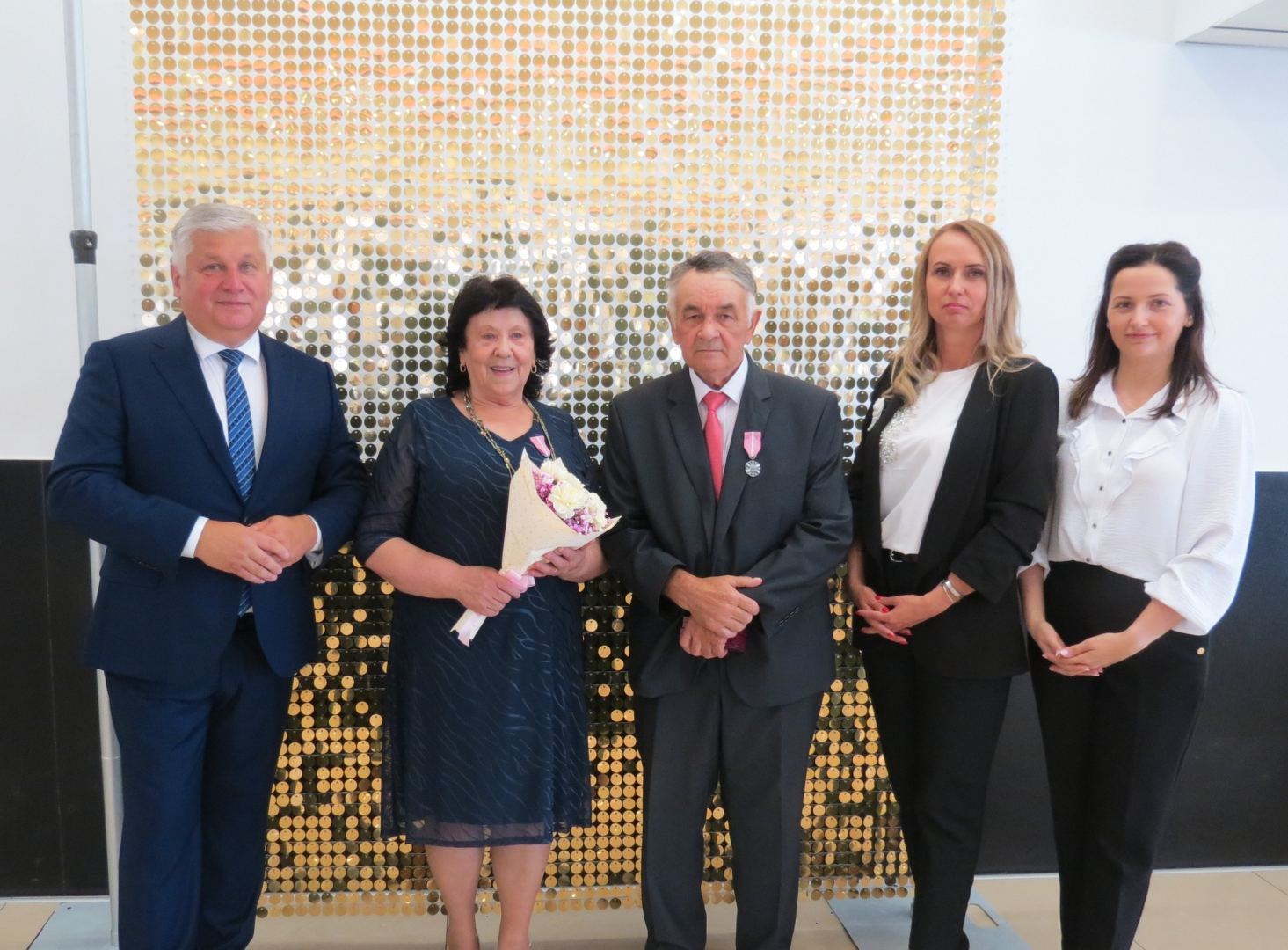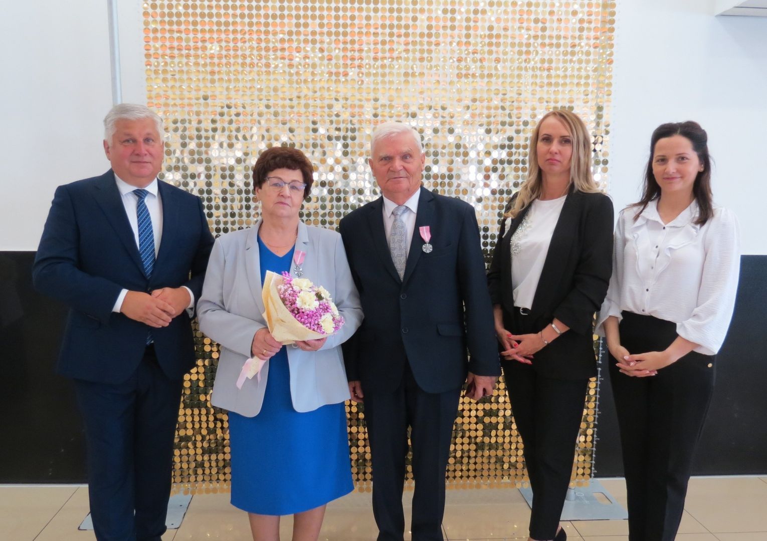 Burmistrz Karol Skrzypczak wraz z kierownik Urzędu Stanu Cywilnego Natalią Wawrzyniak oraz jej zastępcą Katarzyną Rajewską wręczyli jubilatom, w imieniu Prezydenta Rzeczypospolitej Polskiej, Medale za Długoletnie Pożycie Małżeńskie.