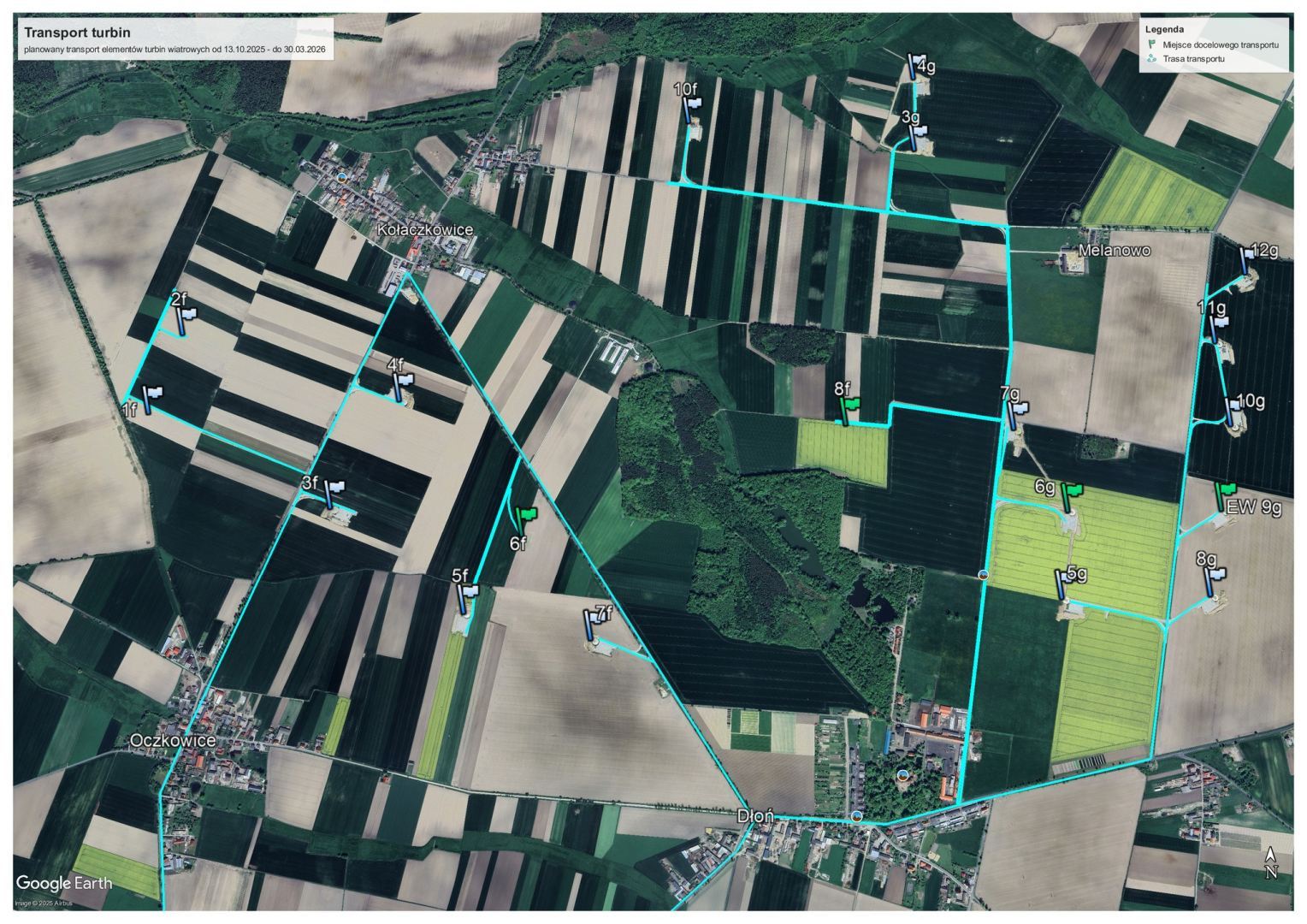 Od 13 października 2025 roku do 30 marca 2026 roku przez teren gminy Miejska Górka będzie odbywał się transport turbin wiatrowych. Przejazdy będą przebiegały przez miejscowości: Gostkowo, Kołaczkowice, Oczkowice, Konary, Topólka, Dłoń, Melanowo, Zmysłowo, Rozstępniewo, Roszkowo, Sobiałkowo oraz Annopol.