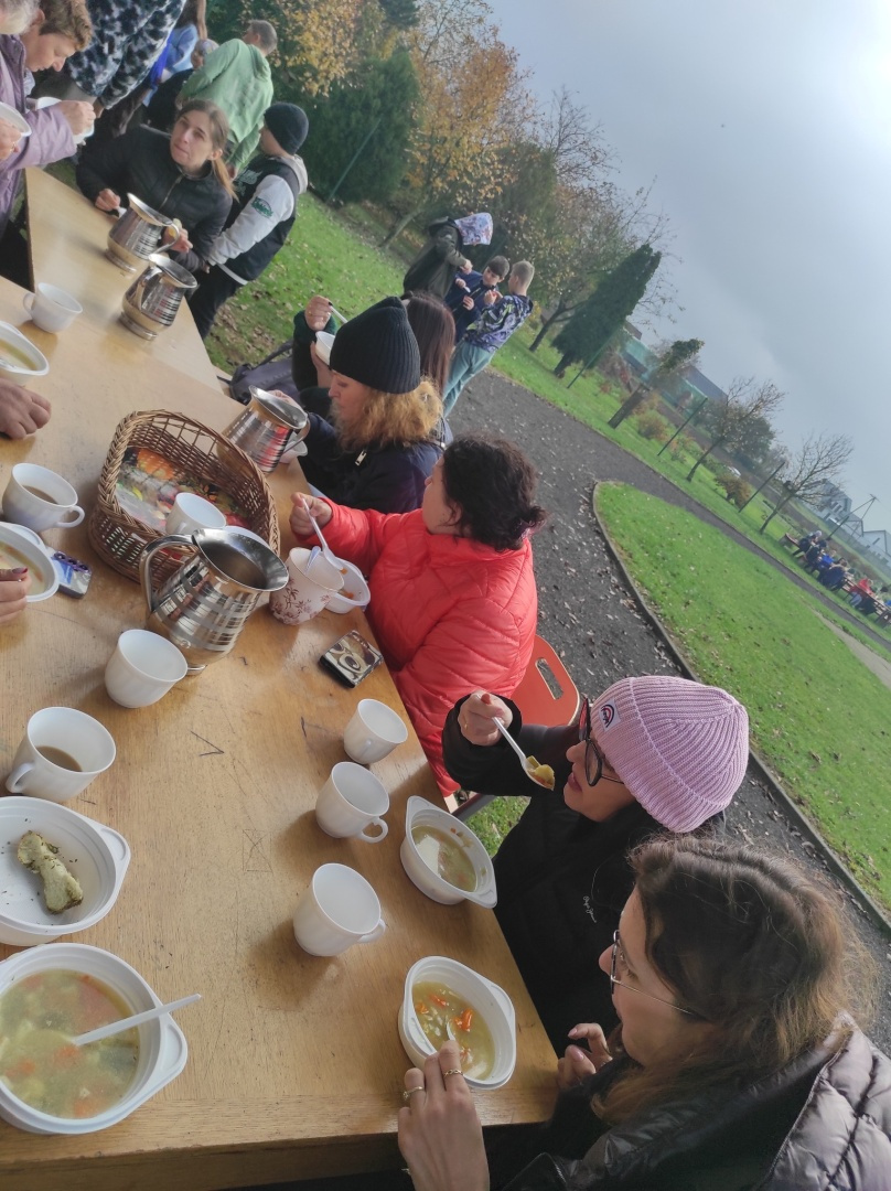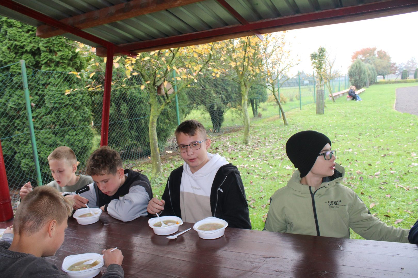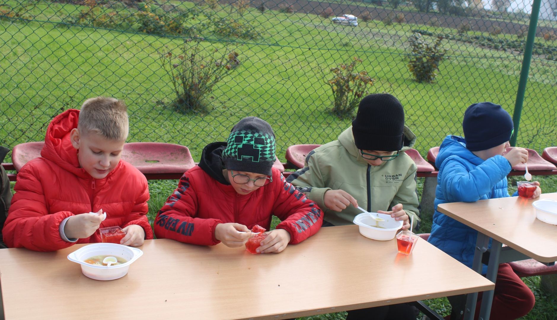 Jesień to doskonały czas, by połączyć naukę z przyjemnością i promowaniem zdrowego stylu życia. W Zespole Szkół w Dłoni uczniowie świętowali zakończenie jesiennego dnia pustej klasy wspólnym posiłkiem na świeżym powietrzu. W menu znalazły się same pyszności — zupa jarzynowa, chlebek ziołowy, a na deser maliny w galaretce. Do picia serwowano herbatkę z sokiem oraz kawę zbożową z mlekiem. ☕🍇