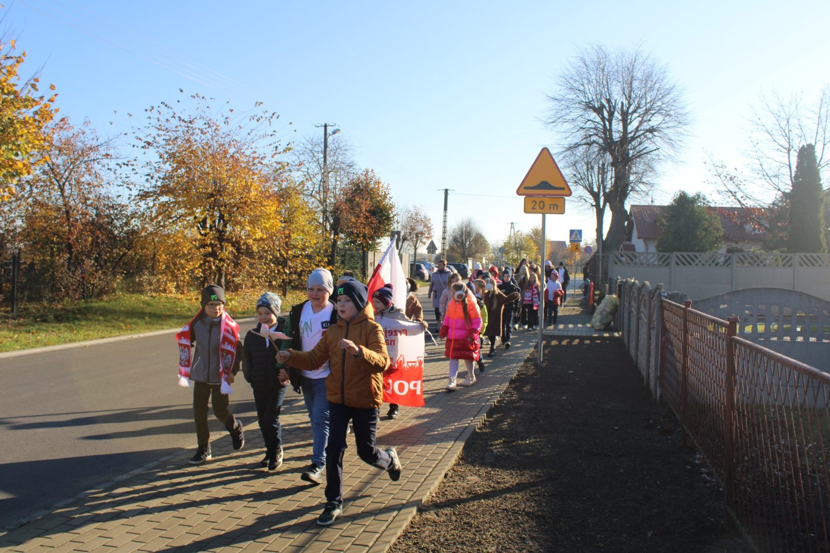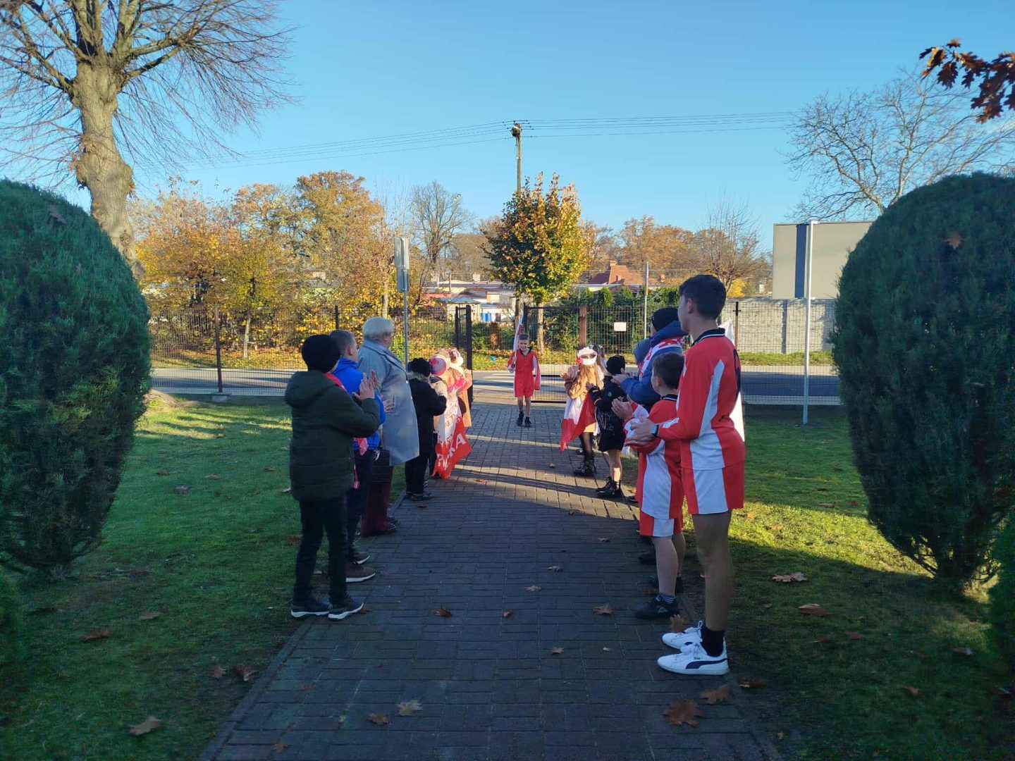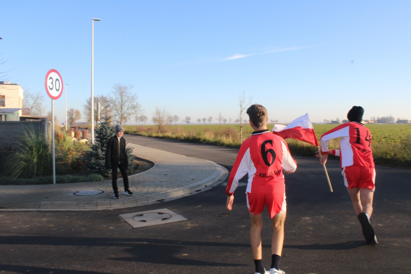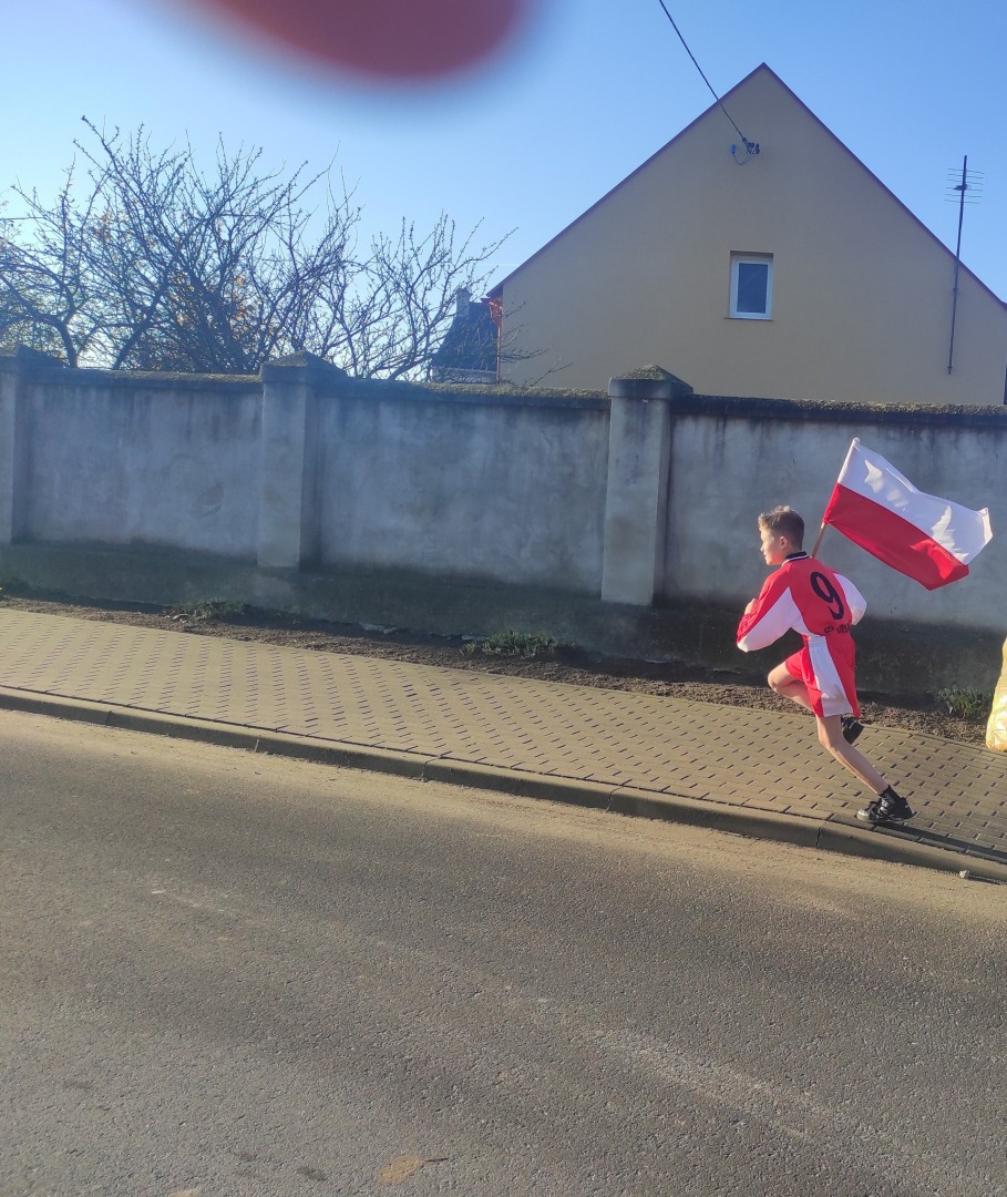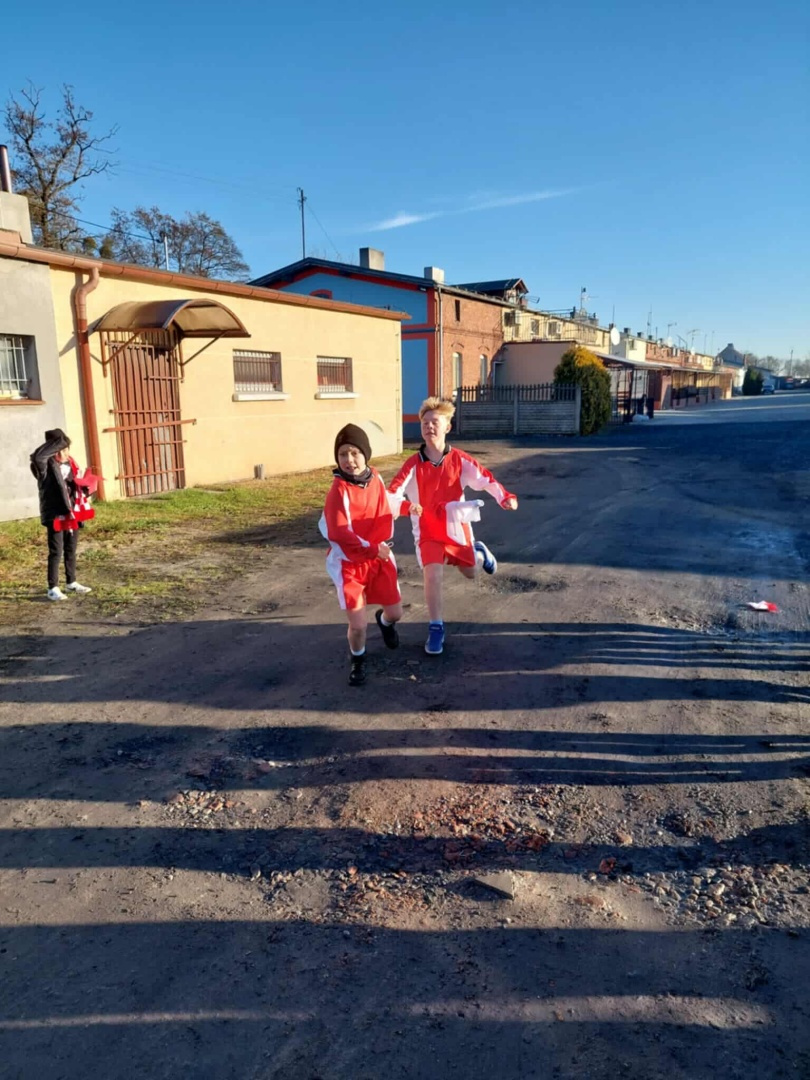 Następnie odbyła się sztafeta z biało-czerwoną flagą, w której reprezentanci uczniów przebiegli ulicami wioski. Pozostali uczniowie kibicowali im z entuzjazmem, tworząc gorącą, patriotyczną atmosferę. Tradycyjnie nie zabrakło również marszu do Dębu Niepodległości w pobliskim lesie – miejsca szczególnego dla całej szkolnej społeczności.