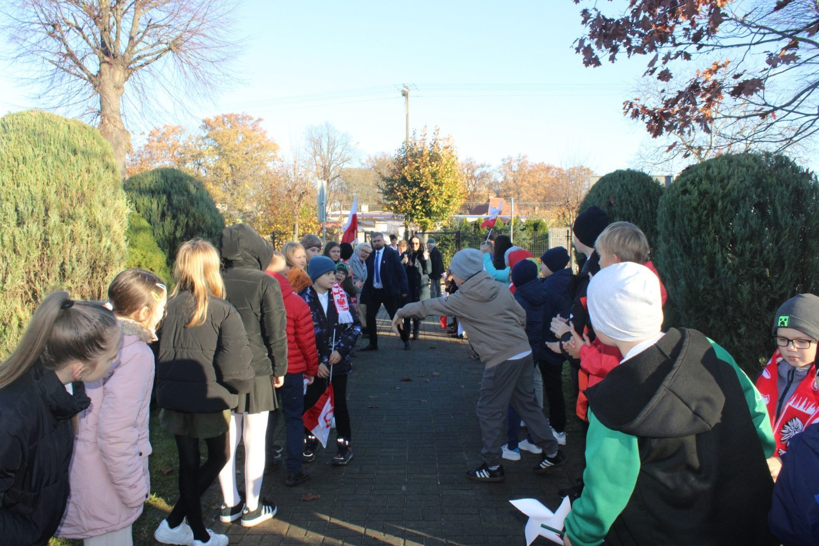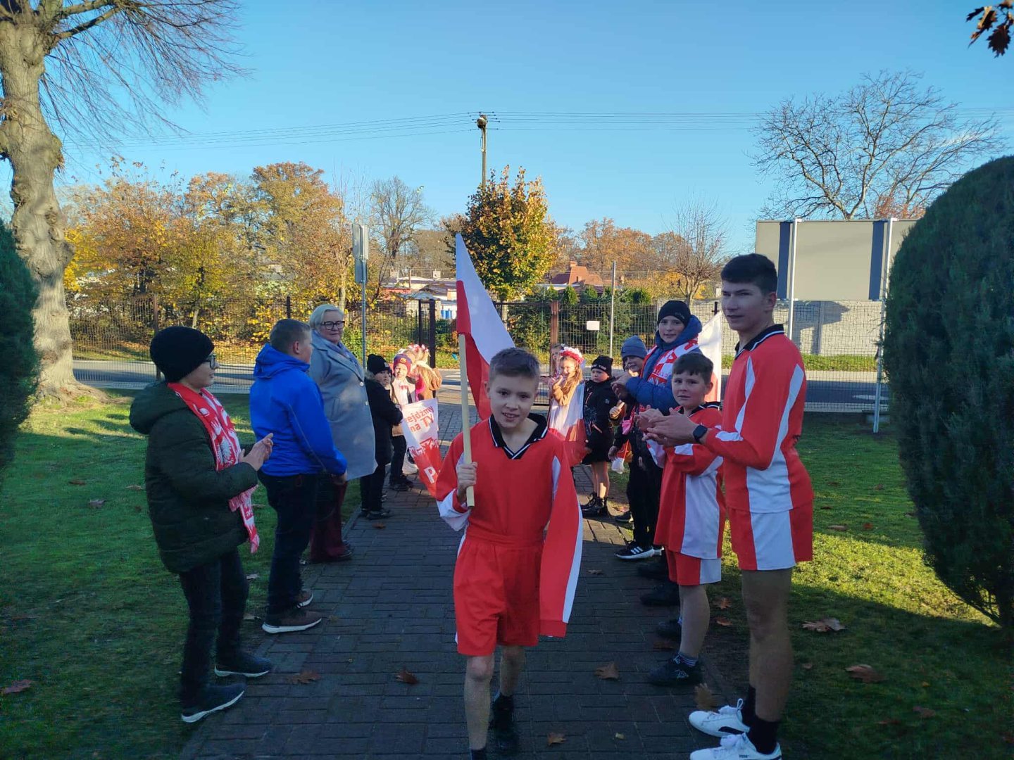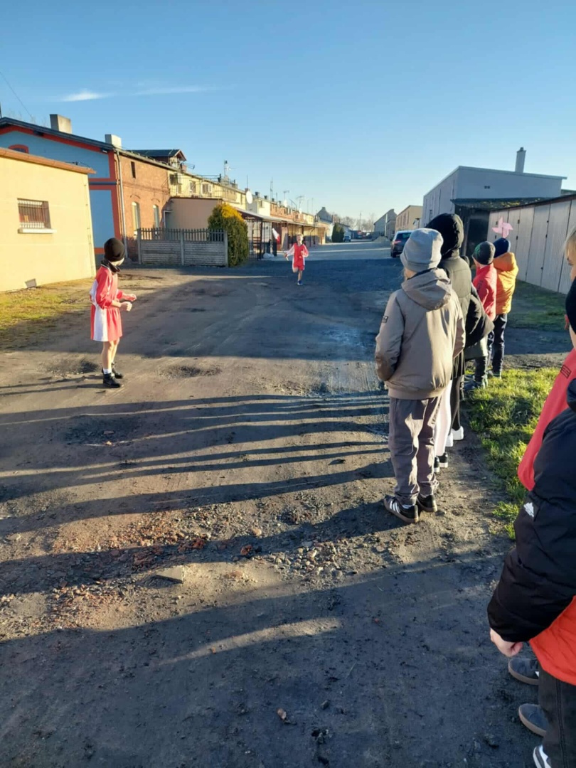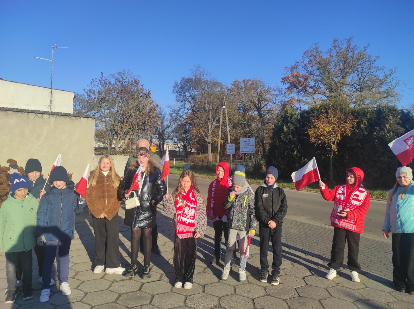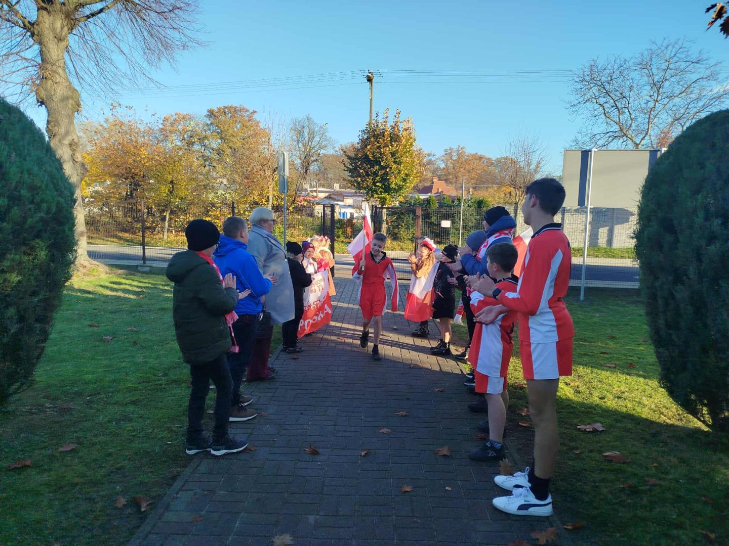 Następnie odbyła się sztafeta z biało-czerwoną flagą, w której reprezentanci uczniów przebiegli ulicami wioski. Pozostali uczniowie kibicowali im z entuzjazmem, tworząc gorącą, patriotyczną atmosferę. Tradycyjnie nie zabrakło również marszu do Dębu Niepodległości w pobliskim lesie – miejsca szczególnego dla całej szkolnej społeczności.