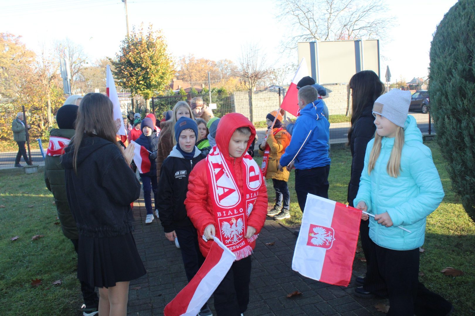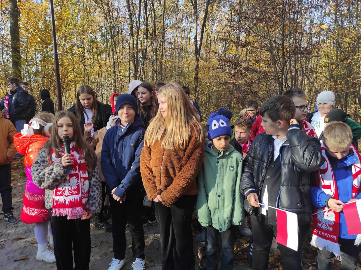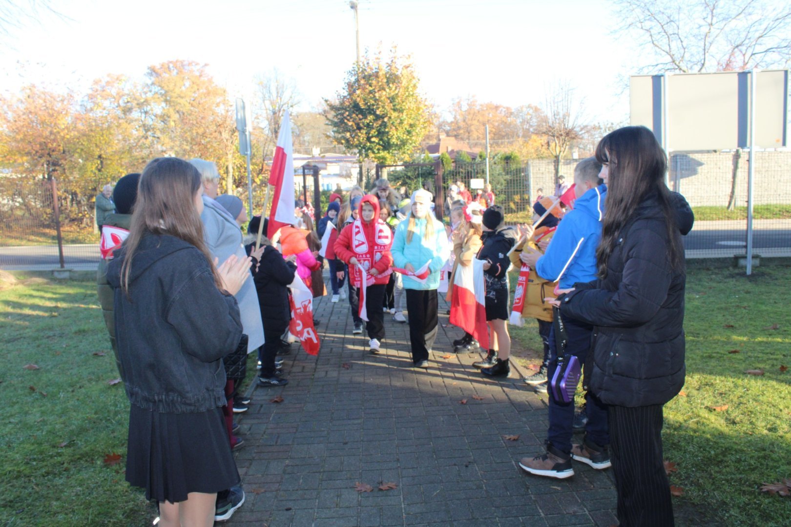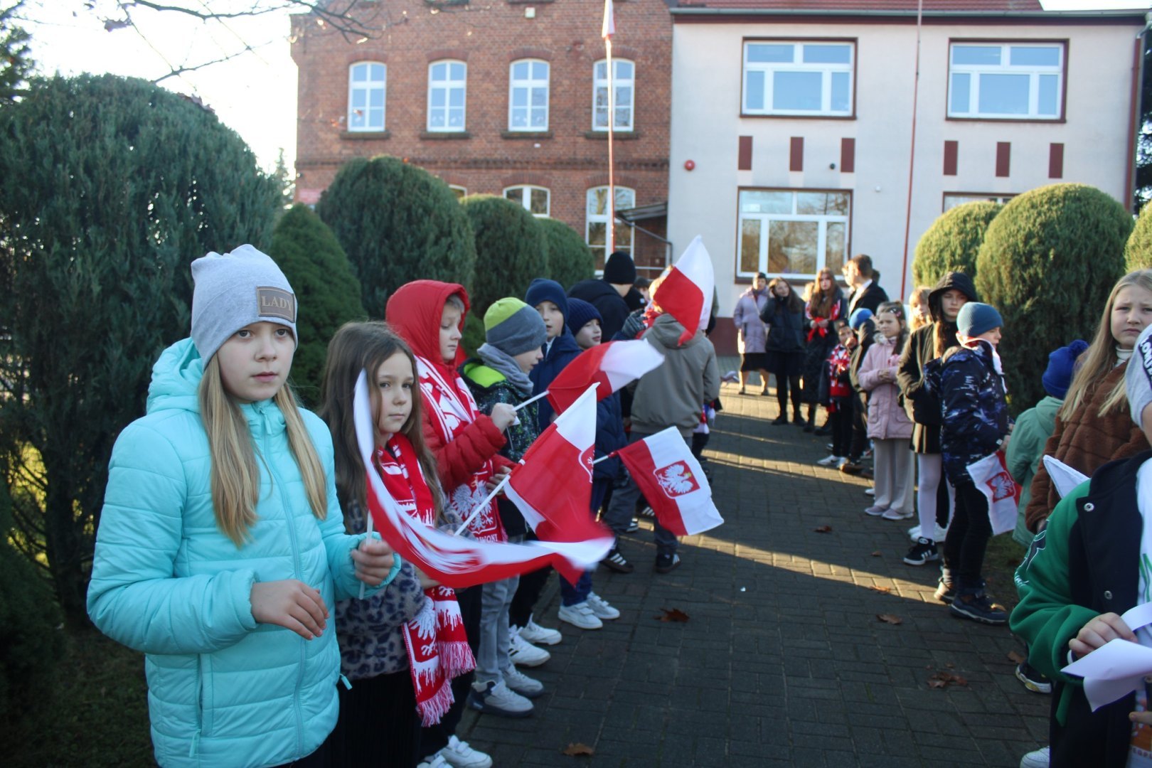 Następnie odbyła się sztafeta z biało-czerwoną flagą, w której reprezentanci uczniów przebiegli ulicami wioski. Pozostali uczniowie kibicowali im z entuzjazmem, tworząc gorącą, patriotyczną atmosferę. Tradycyjnie nie zabrakło również marszu do Dębu Niepodległości w pobliskim lesie – miejsca szczególnego dla całej szkolnej społeczności.