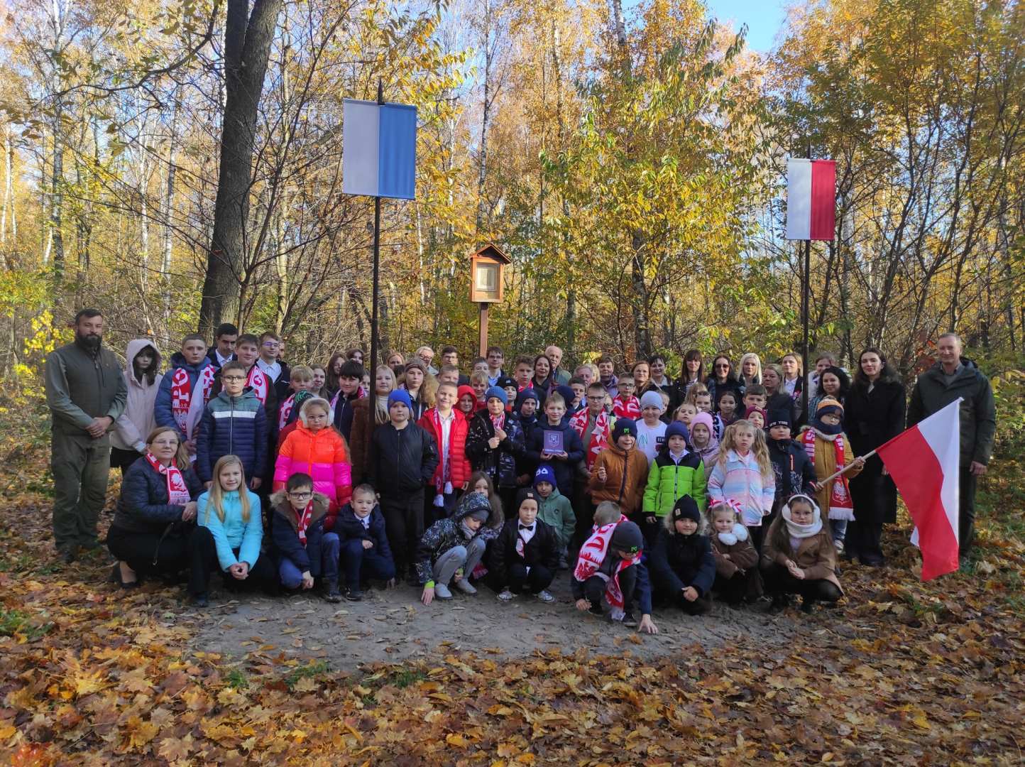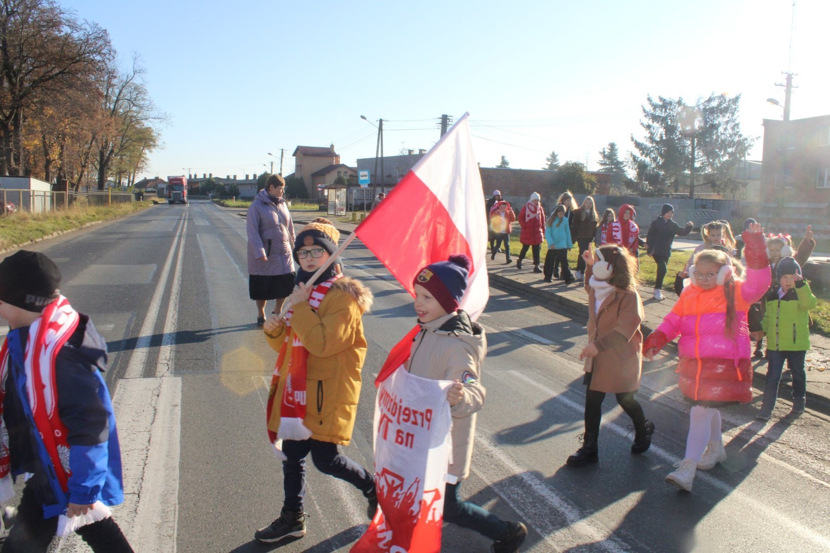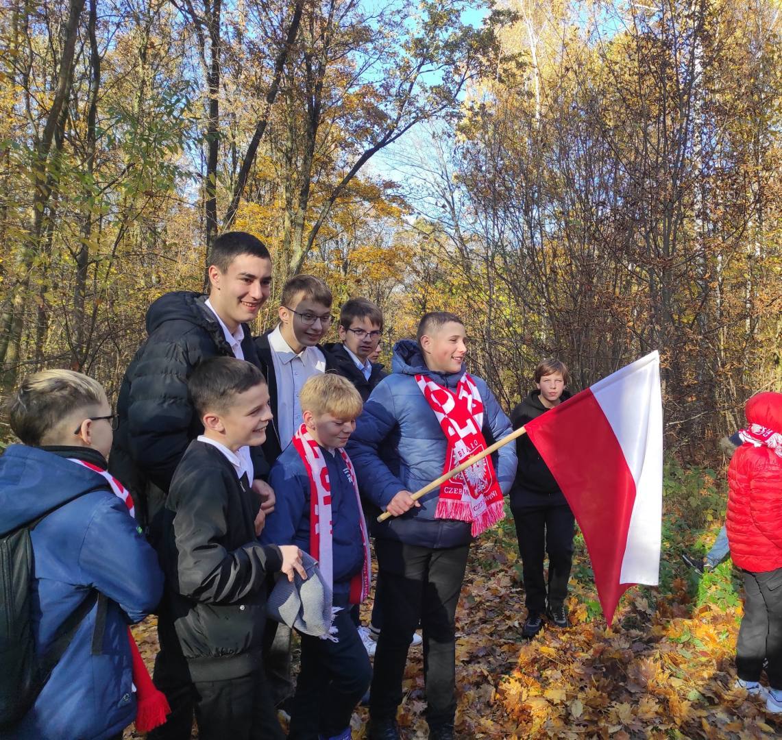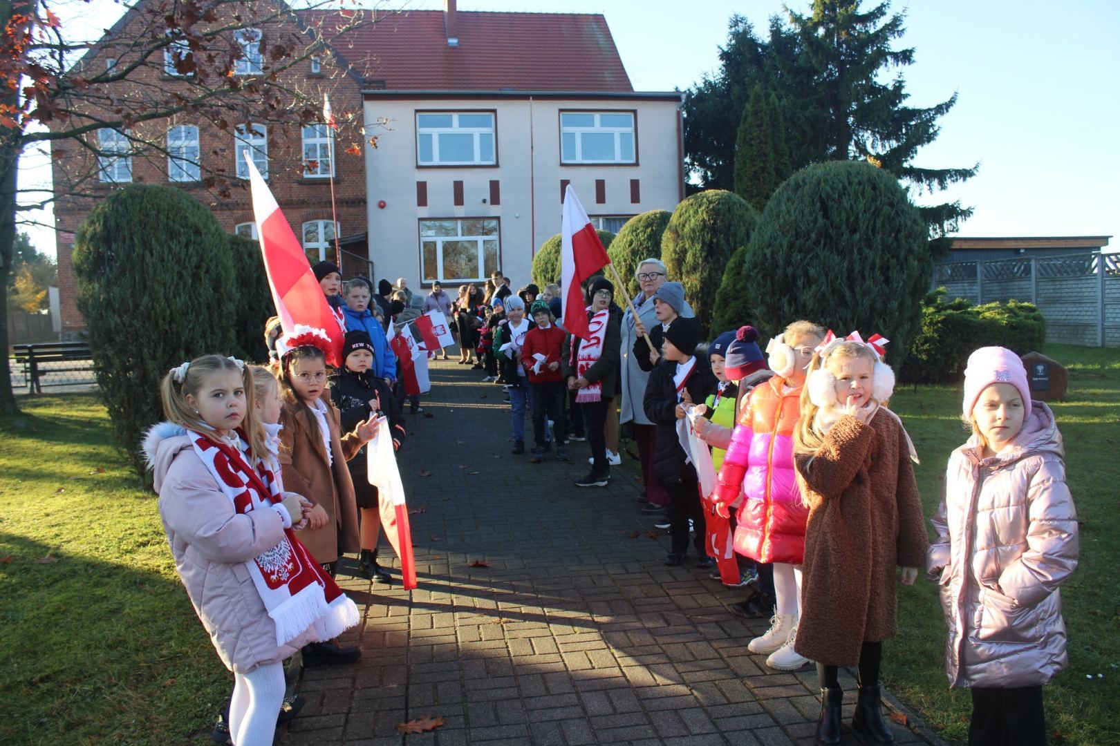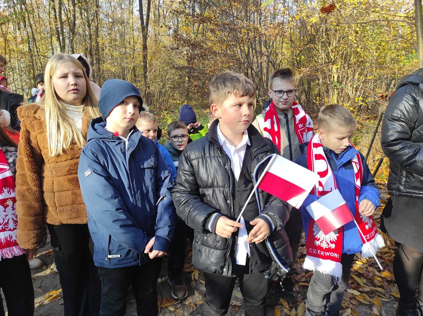 Następnie odbyła się sztafeta z biało-czerwoną flagą, w której reprezentanci uczniów przebiegli ulicami wioski. Pozostali uczniowie kibicowali im z entuzjazmem, tworząc gorącą, patriotyczną atmosferę. Tradycyjnie nie zabrakło również marszu do Dębu Niepodległości w pobliskim lesie – miejsca szczególnego dla całej szkolnej społeczności.