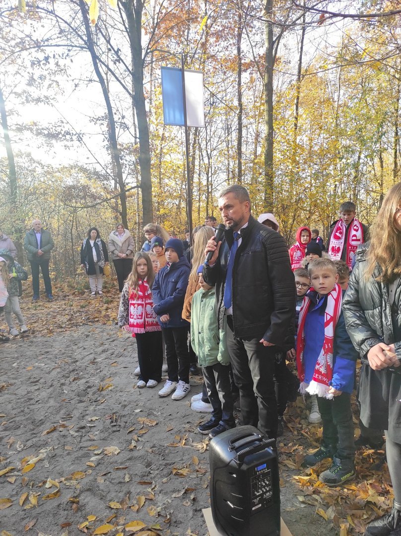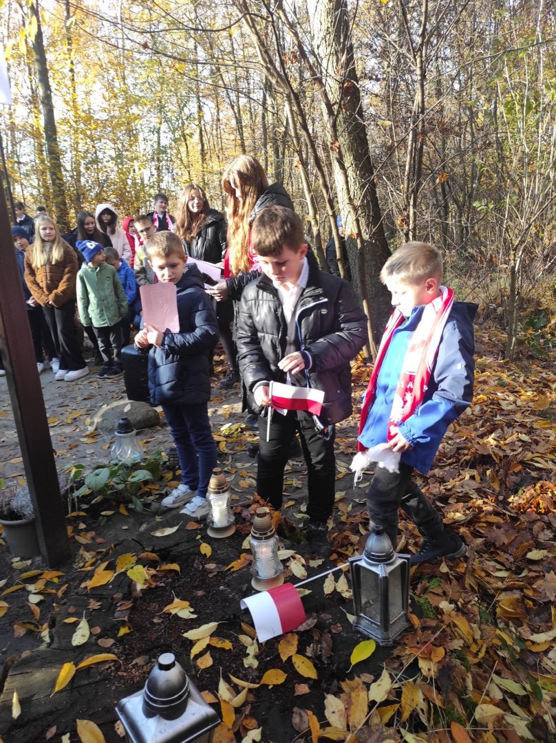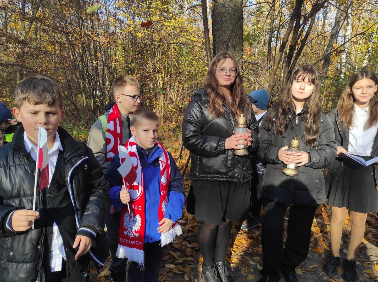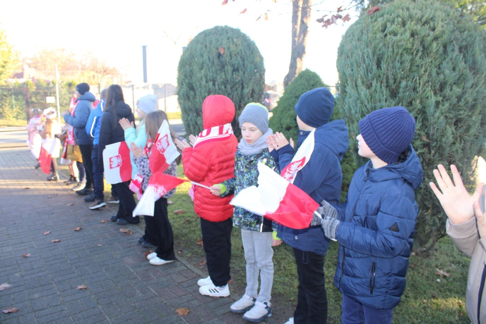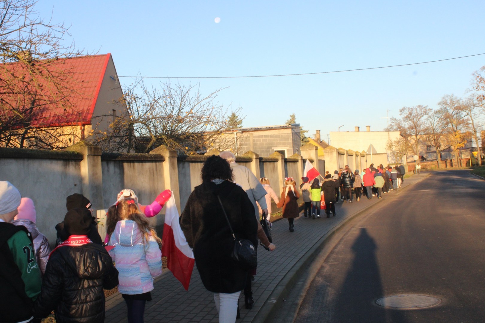 Następnie odbyła się sztafeta z biało-czerwoną flagą, w której reprezentanci uczniów przebiegli ulicami wioski. Pozostali uczniowie kibicowali im z entuzjazmem, tworząc gorącą, patriotyczną atmosferę. Tradycyjnie nie zabrakło również marszu do Dębu Niepodległości w pobliskim lesie – miejsca szczególnego dla całej szkolnej społeczności.