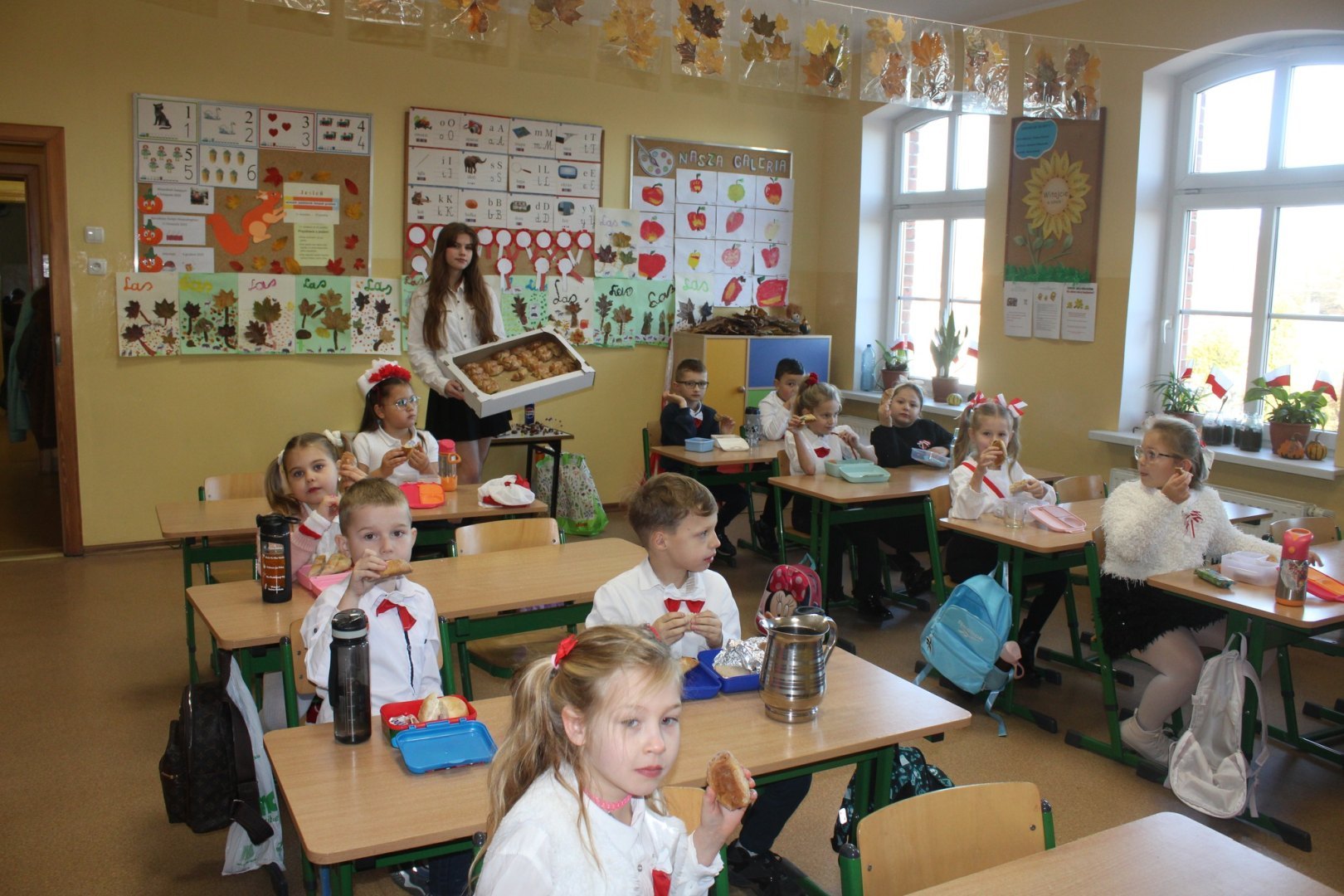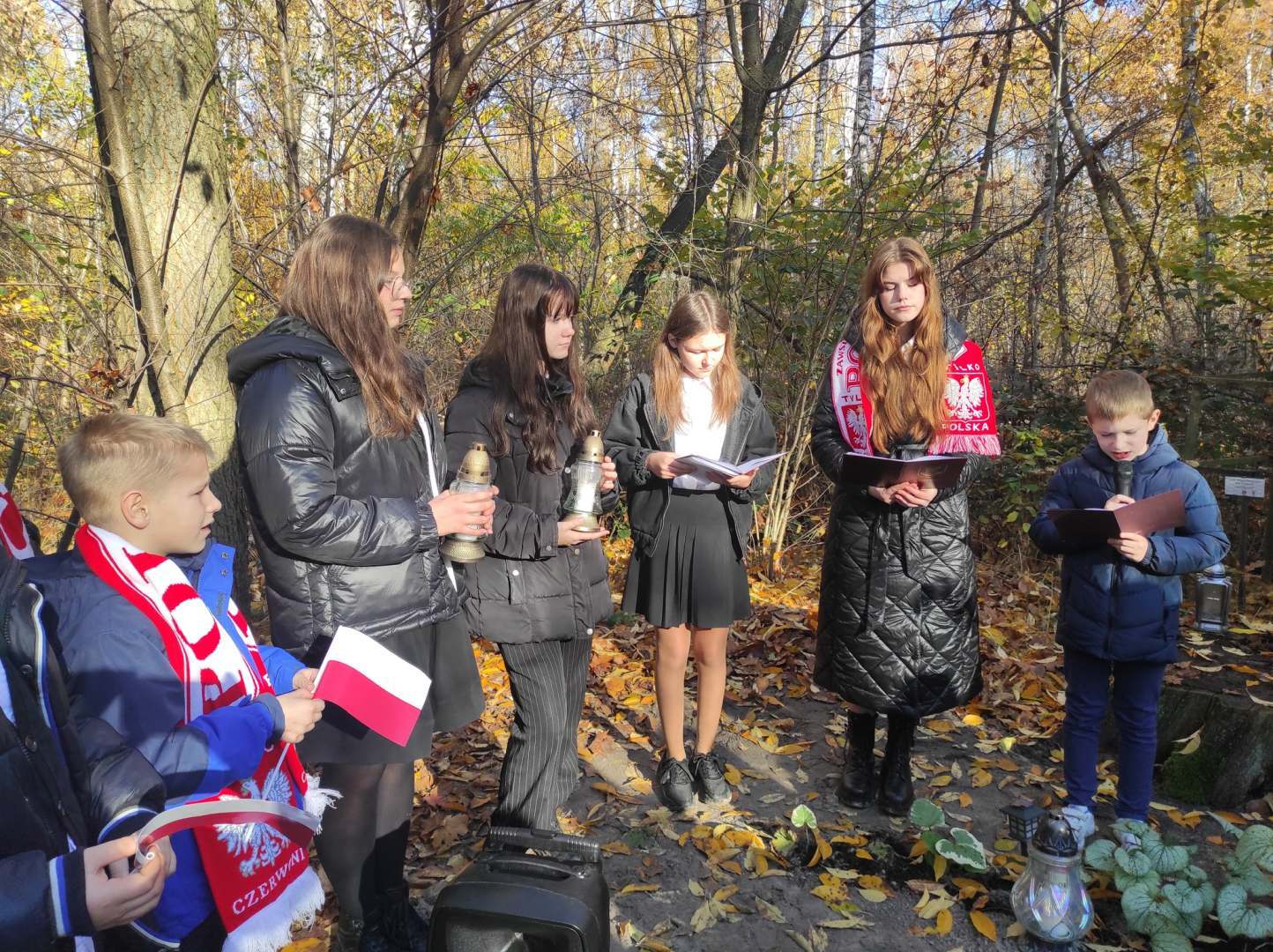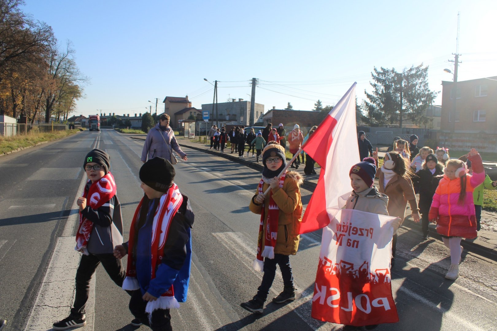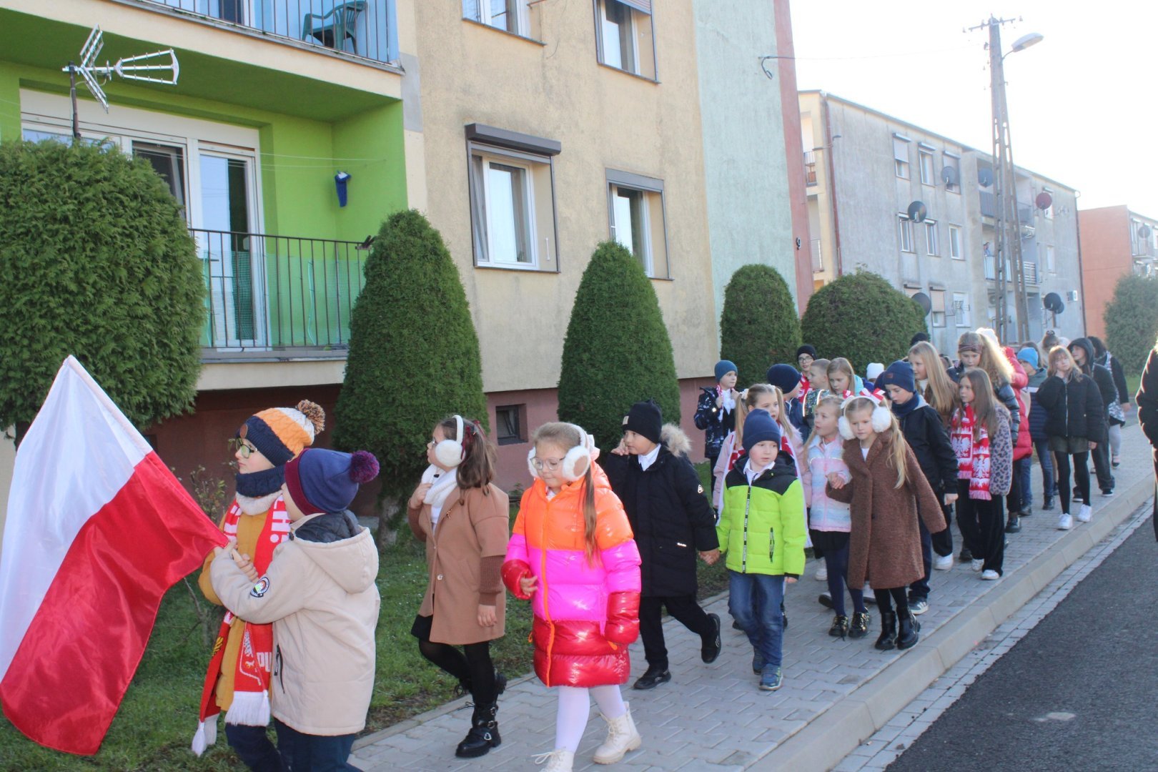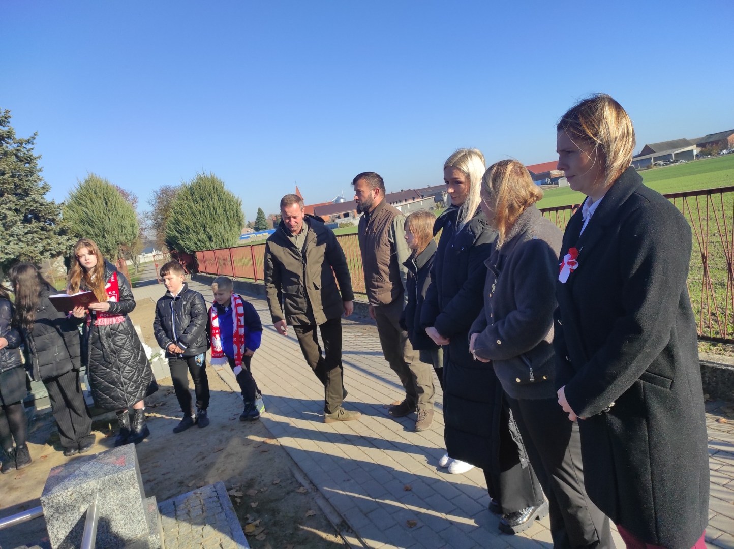 Następnie odbyła się sztafeta z biało-czerwoną flagą, w której reprezentanci uczniów przebiegli ulicami wioski. Pozostali uczniowie kibicowali im z entuzjazmem, tworząc gorącą, patriotyczną atmosferę. Tradycyjnie nie zabrakło również marszu do Dębu Niepodległości w pobliskim lesie – miejsca szczególnego dla całej szkolnej społeczności.