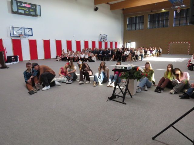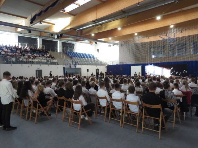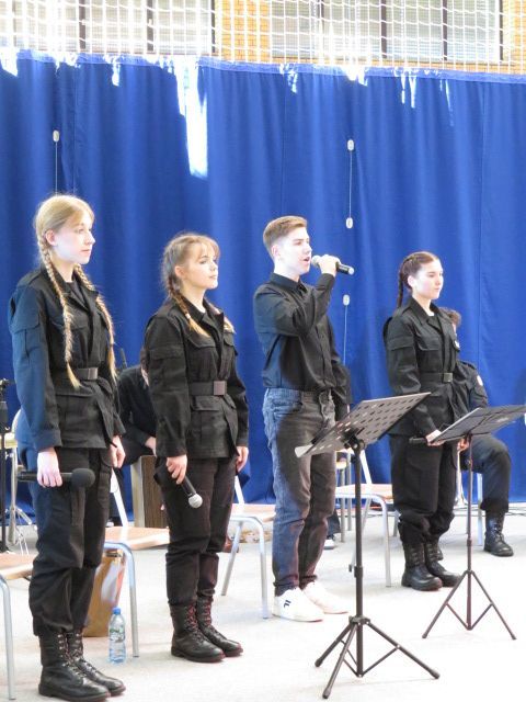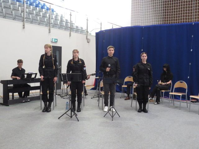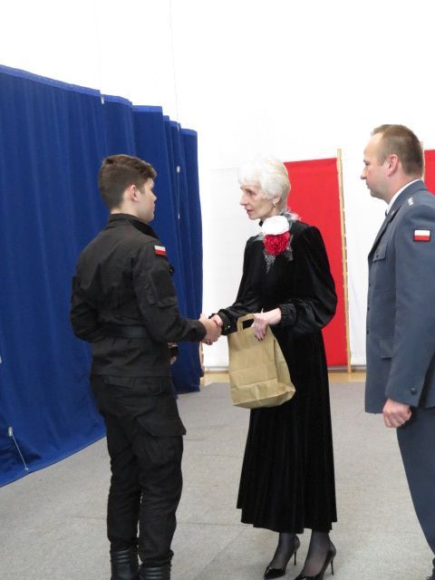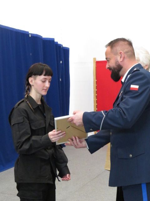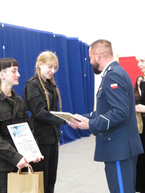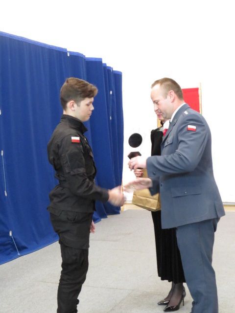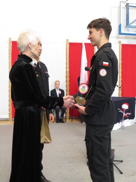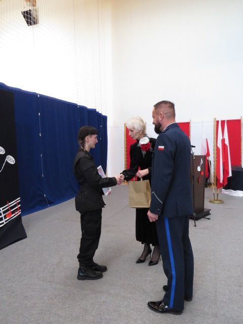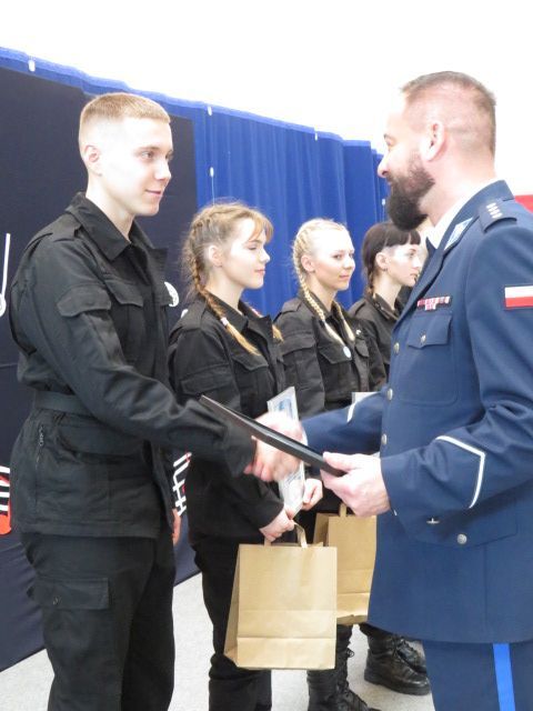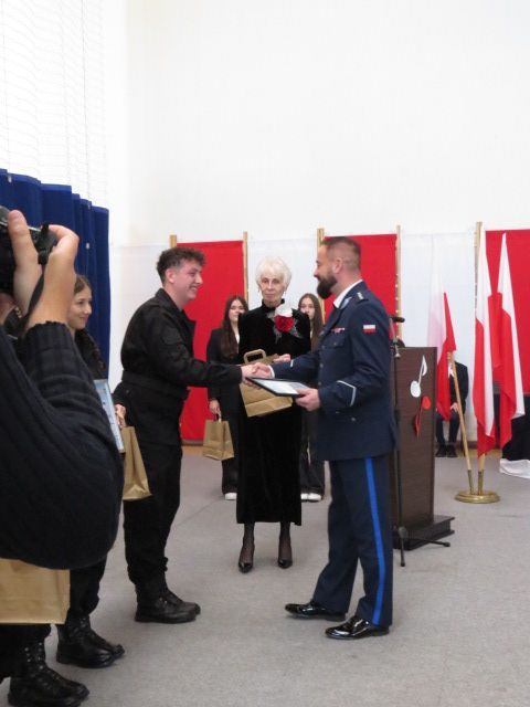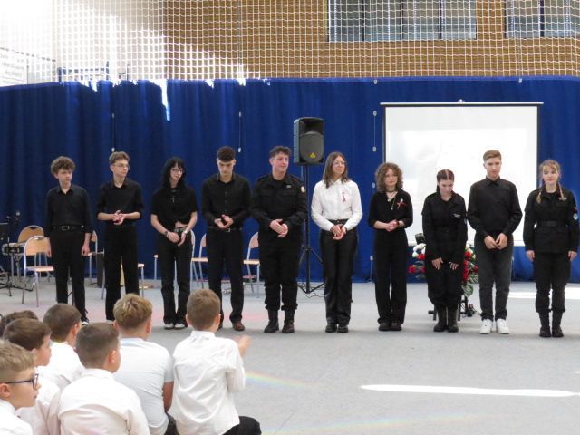 Jak co roku, zaprezentowano również pokaz musztry w wykonaniu starszych uczniów kierunków mundurowych. Podczas wydarzenia wręczono także statuetki dla najbardziej zaangażowanych uczniów najstarszego rocznika, którzy wyróżnili się swoją aktywnością i postawą.