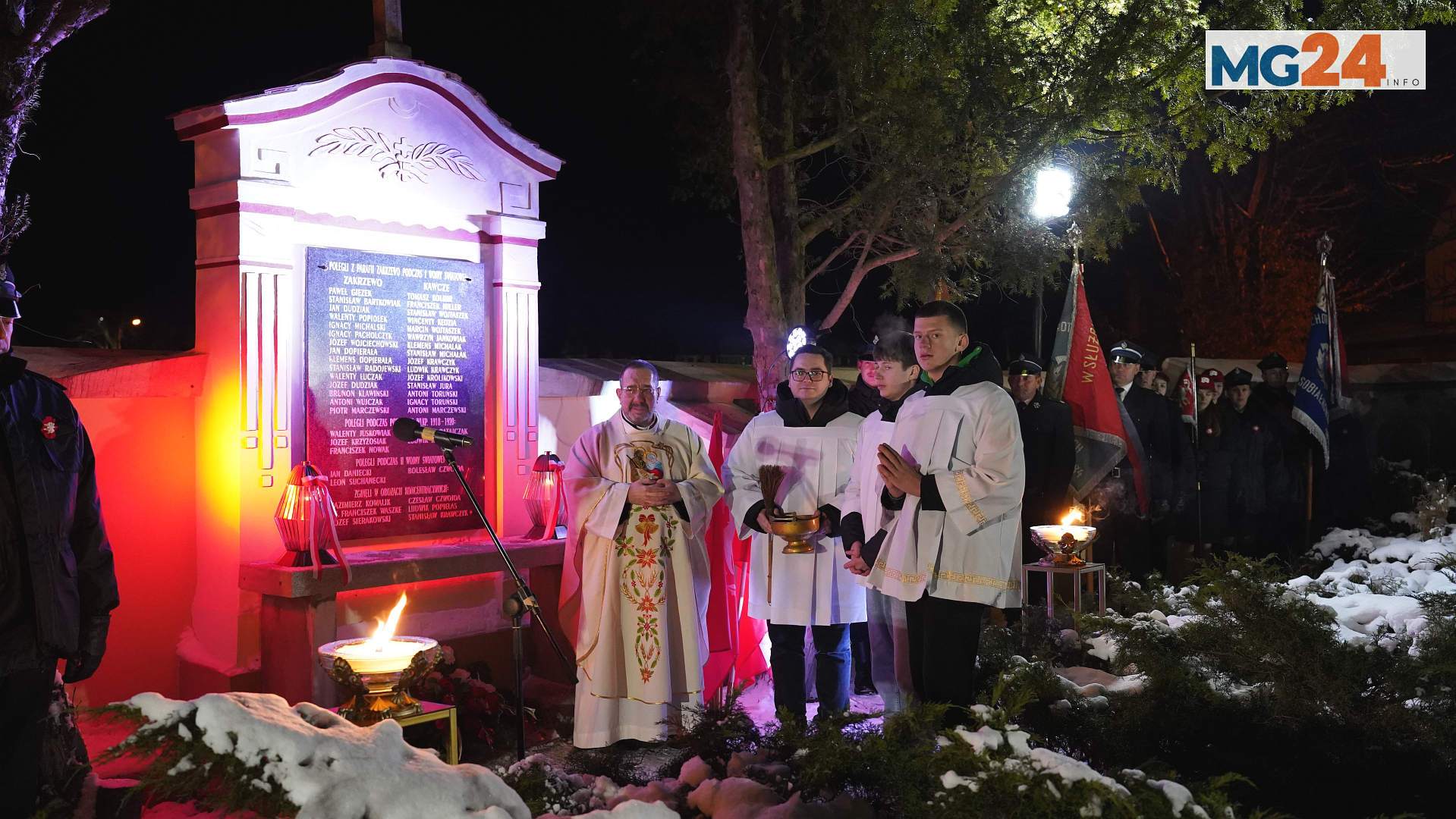 Po nabożeństwie uczestnicy udali się pod pomnik pamięci, gdzie odbyło się uroczyste składanie kwiatów i zapalanie zniczy. W trakcie tej części obchodów poświęcono również odnowioną tablicę pamiątkową, upamiętniającą osoby pomordowane podczas wojen i w obozach, a także bohaterów Powstania Wielkopolskiego. Symboliczny akt poświęcenia był wyrazem szacunku dla ofiar oraz troski o zachowanie lokalnej pamięci historycznej dla przyszłych pokoleń.