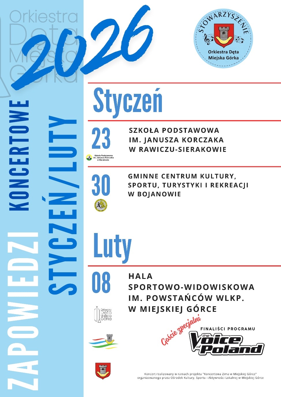 Stowarzyszenie Orkiestra Dęta Miejska Górka zaprasza na koncerty styczniowo-lutowe 2026, które odbędą się w kilku miejscowościach regionu.