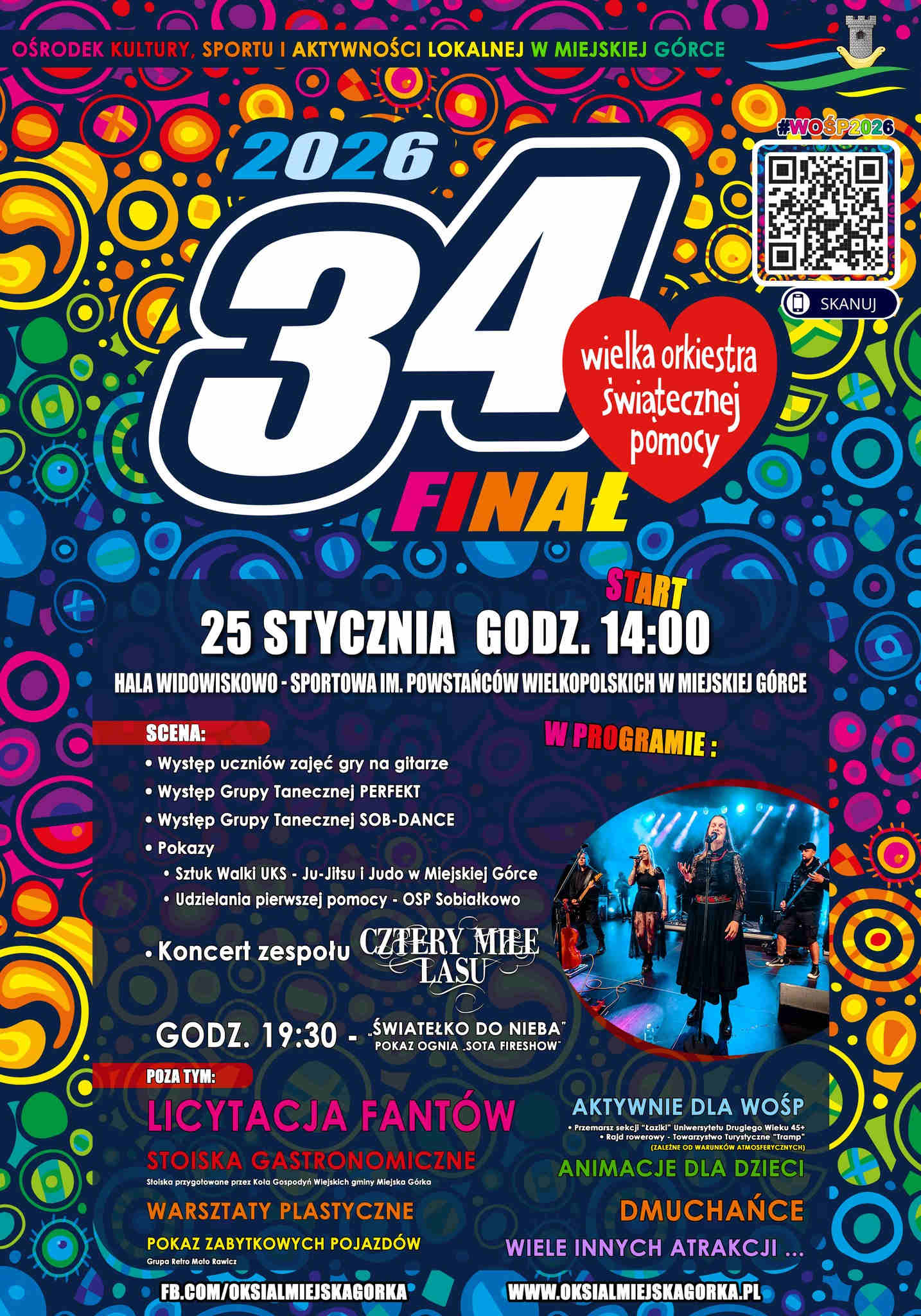 Finał WOŚP w Miejskiej Górce to połączenie muzyki, zabawy i wspólnego pomagania. Organizatorzy zapraszają mieszkańców całej gminy i okolic do udziału w wydarzeniu oraz wsparcia tegorocznej zbiórki.