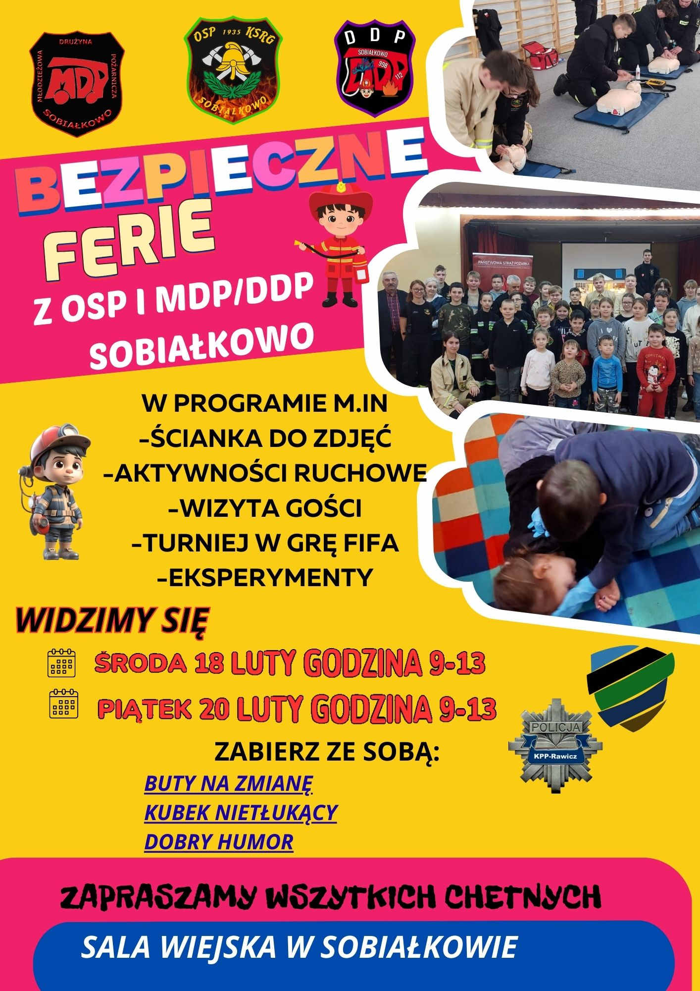 W czasie ferii zimowych w Sobiałkowie odbędzie się wydarzenie pn. „Bezpieczne Ferie”, organizowane przez OSP Sobiałkowo we współpracy z MDP i DDP Sobiałkowo.