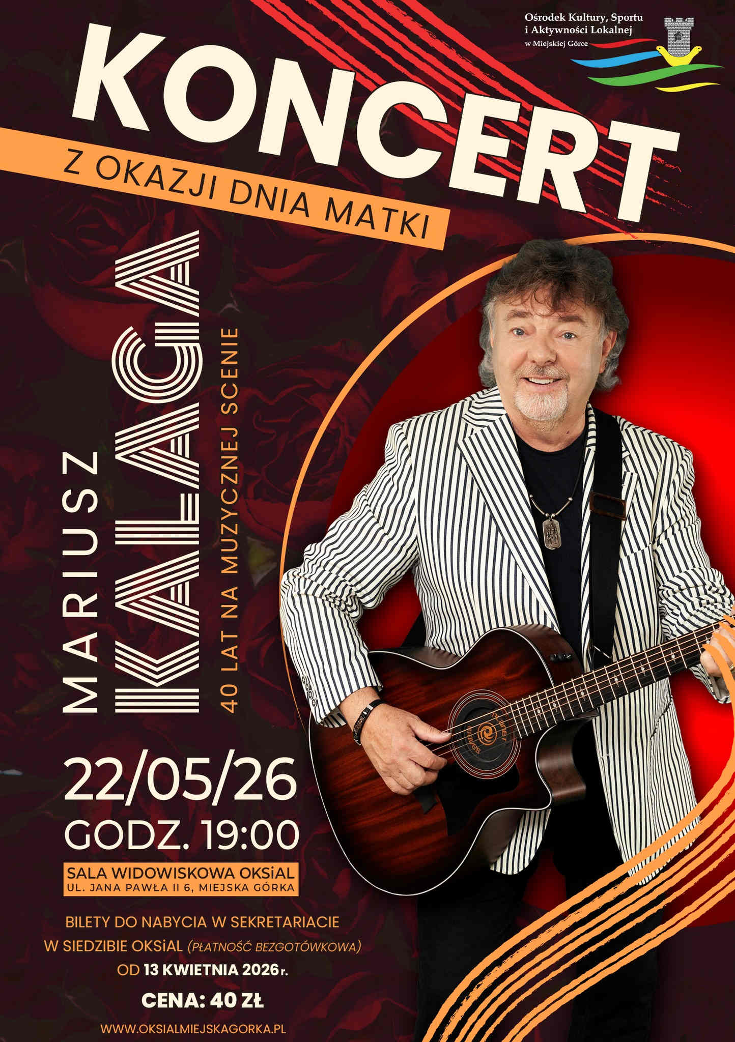 Szukacie idealnego prezentu na Dzień Matki? Mamy dla Was propozycję, która chwyta za serce! Już 22 maja na scenie OKSiAL wystąpi jedyny w swoim rodzaju Mariusz Kalaga! 🎸✨
